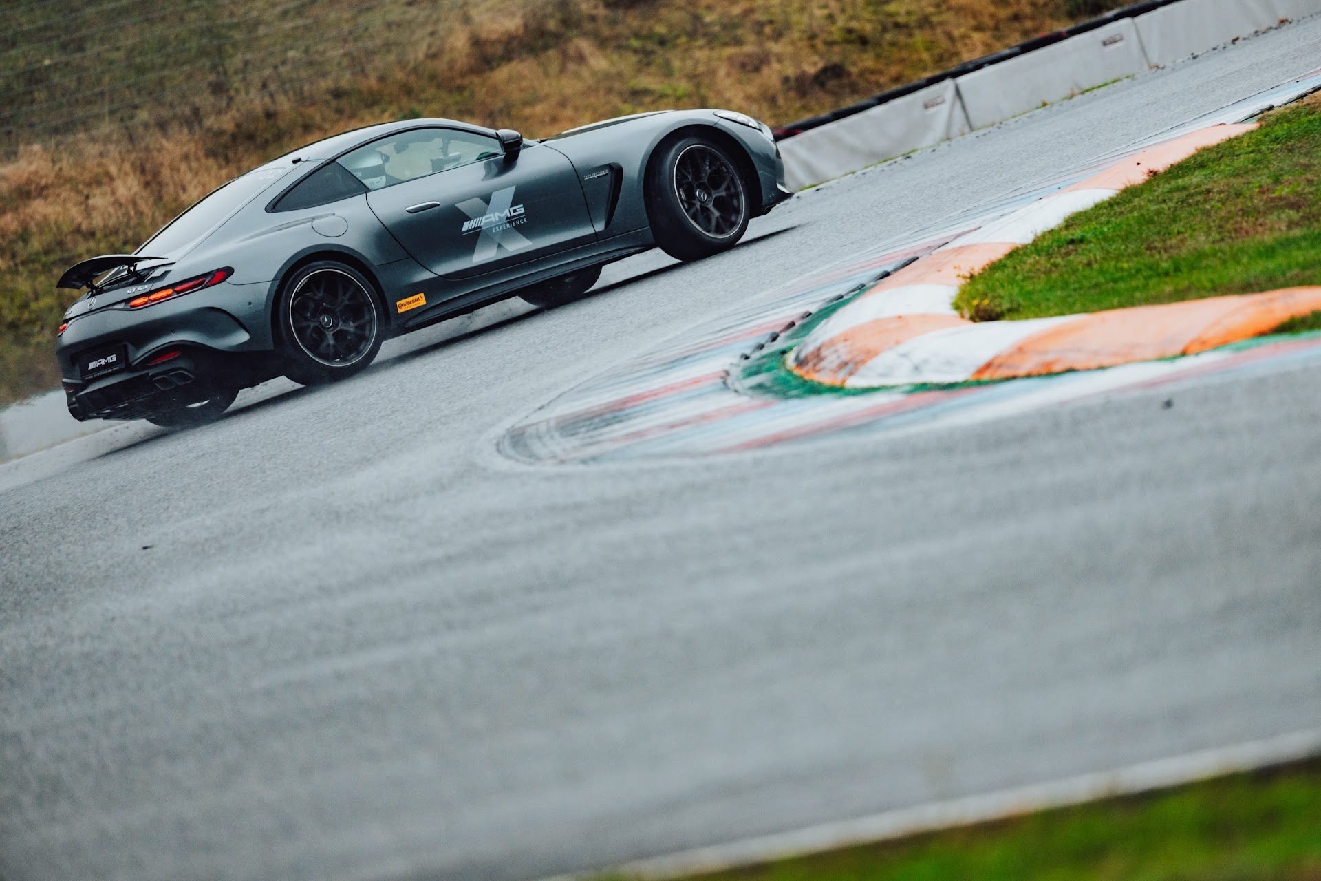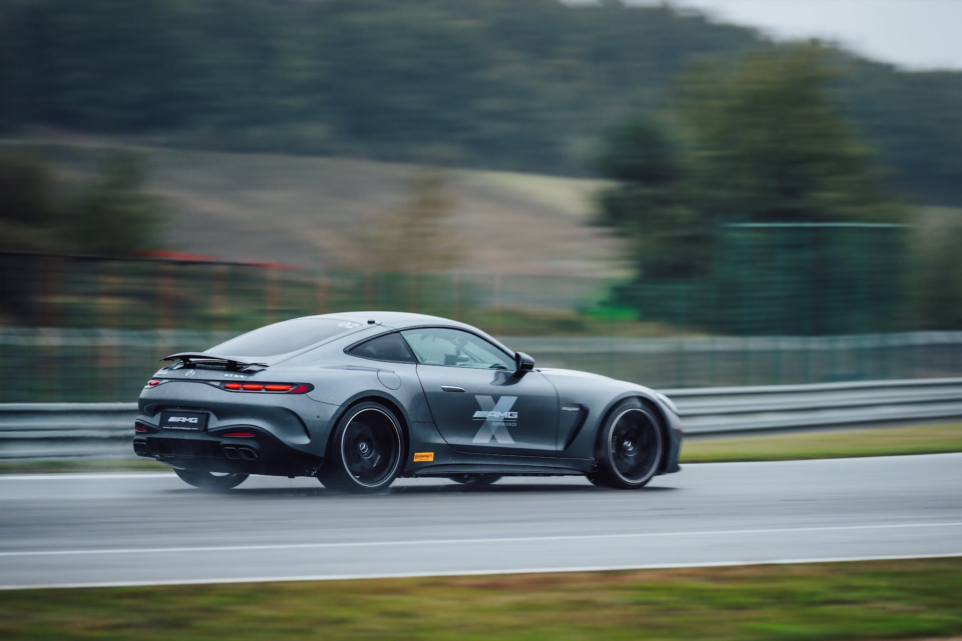V zásade vo všetkom je iné AMG GT coupé. Je to zrejme posledný športiak od Mercedesu, ktorého sa nedotkla elektrifikácia. Motor je čistokrvné biturbo a jeho zvukové hromobitie posúva celú jazdu na celkom nový level. Aj ľahkosť, aká z auta vyžaruje, je v kontraste s technologickou C63. Tu je to stále iba o vás a vašich schopnostiach, o čom sme sa presvedčili v race taxi.