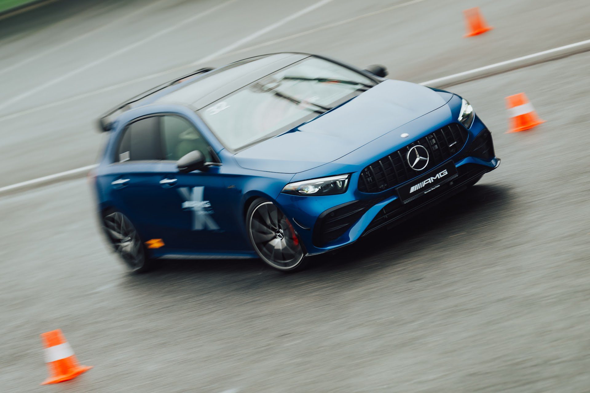 Program začína deň vopred inštruktážou, v ktorej sú predstavené nielen bezpečnostné a šoférske techniky, ale taktiež pestrá história AMG. Skutočná šou ale začína od skorého rána ďalšieho dňa. Účastníci sú rozdelení medzi inštruktorov po ôsmych, aby sa im dokázali individuálne venovať. Rozdelenie nie je náhodné, ale veľmi akčné. Hneď nás posadili do A35 AMG a vyrazili sme na slalom. Podľa nášho času a techniky nás následne pridelili do skupiny Martina Semeráda. Podobne ako jeho kolegovia, aj on má za sebou bohatú pretekársku históriu a jeho skúsenosti sú na nezaplatenie.