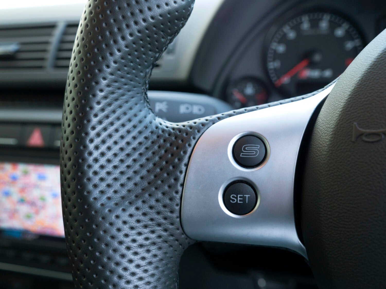 Volant s plochou spodnou stranou pokrývala perforovaná koža s kontrastným prešívaním, čo zvýrazňovalo športový vzhľad a zlepšovalo úchop. Prístrojový panel obsahoval špecifické RS ukazovatele, medzi ktoré patrili analógový teplomer oleja, merač tlaku oleja a digitálny indikátor okamžitého výkonu. Stredová konzola smerovala k vodičovi a obsahovala hliníkové ovládače klimatizácie, ktoré zvyšovali vizuálny dojem.