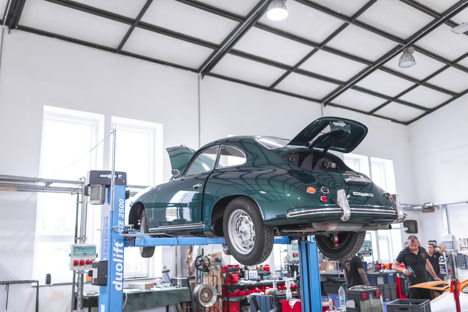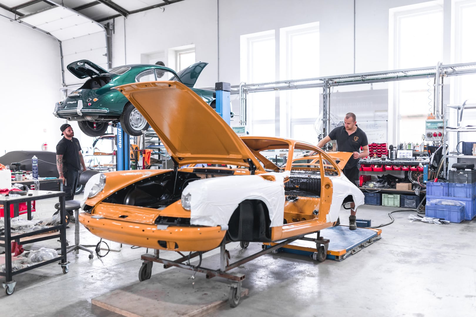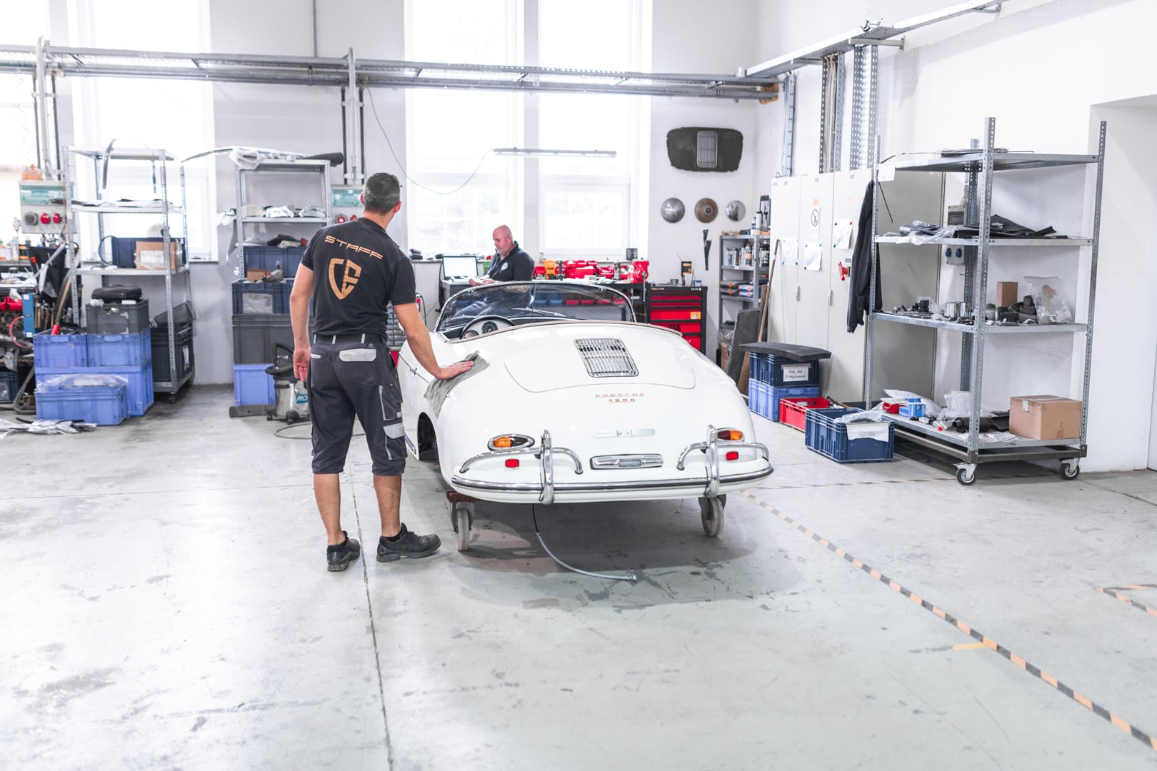 V útrobách dvoch budov nájdete klampiarov, motorárov, lakýrnikov, čalúnnikov… Jednoducho táto spoločnosť sa postará o všetko. Po vstupe vás ohromí pocit jedinečnosti diela, ktoré zostrojil Ferdinand Porsche pred viac ako polstoročím. Ucítite vôňu podobnú ako pri vstupe do antikvariátu, očarí vás pohľad na originálne štósy látky, ktorá je na vlas rovnaká, ako tá pôvodná. Čalúnnik ručne šijúci každý jeden šev na sedadle. Odletujúce iskry z pôvodného rámu karosérie v zvarovni. Vôňa starého motorového oleja pri pohľade na rozobratý šesťvalcový boxer z 911-ky. Torzo pôvodnej 356-ky po opieskovaní, pripravené na nový lak. Áno, je to skutočný zážitok, ktorý jednoducho treba precítiť všetkými zmyslami.