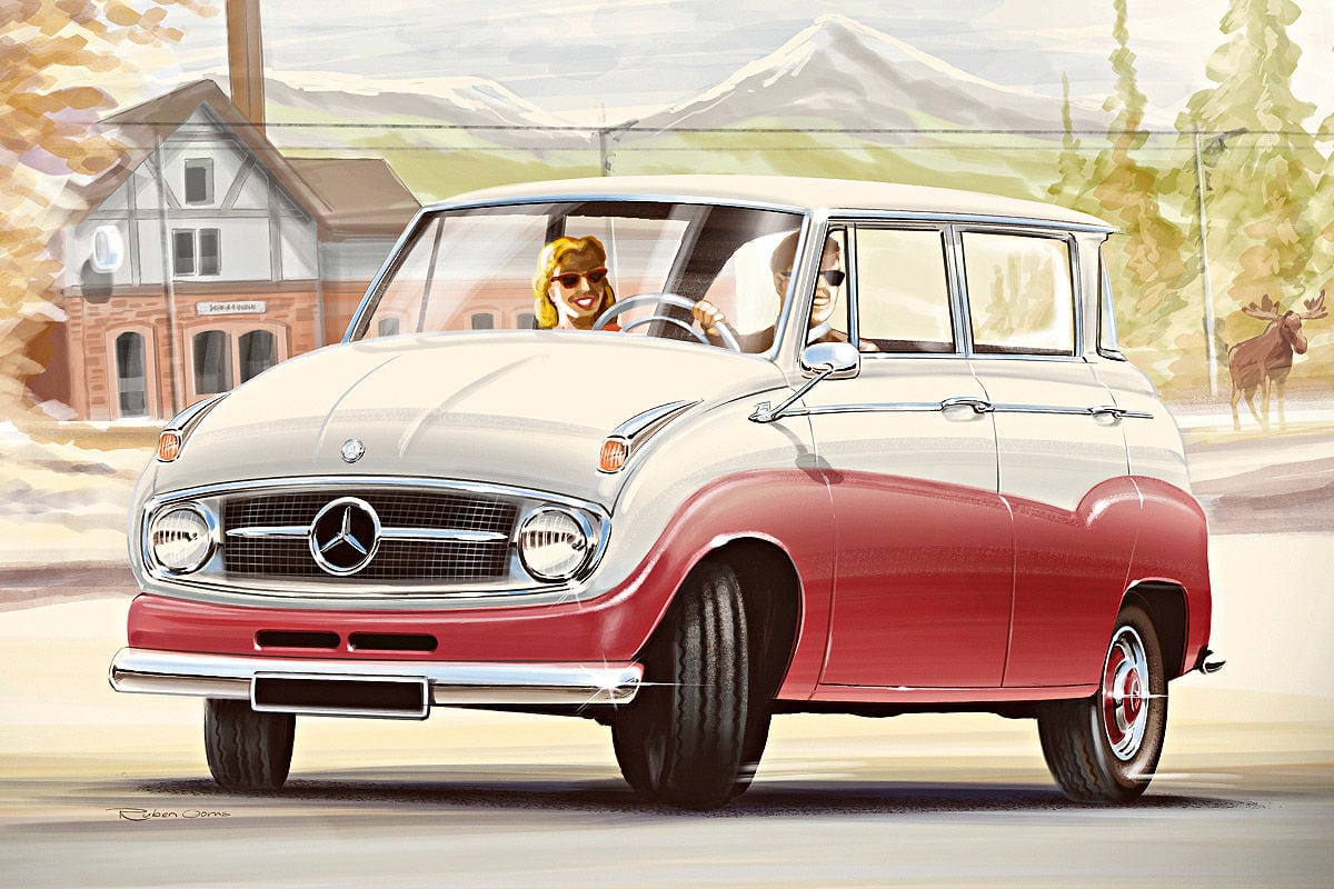 Prvá generácia milovanej, no skôr nenávidenej triedy A, uzrela svetlo sveta v roku 1997. Vzhľadom na bohatú históriu automobilky ako takej je to poriadne neskoro. A takto nejak by áčko vyzeralo, ak by sa šéfovia Mercedesu rozhodli postaviť kompaktné auto v roku 1955.