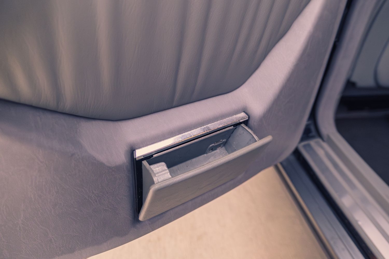 Interiér využíva mäkké kožené výplne dverí, kvalitné kobercové čalúnenia a originálne drevené dekory z pravého dreva. Povrch drevených panelov si drží lesk aj po desaťročiach a lak nevykazuje praskliny ani deformácie. Koža na sedadlách si zachováva tvar, švy držia pevne a materiál nepôsobí vysušene, čo poukazuje na kvalitu koze aká sa v tej dobe dávala do aut. Palubná doska si udržiava pevnosť bez deformácií spôsobených teplotnými zmenami.