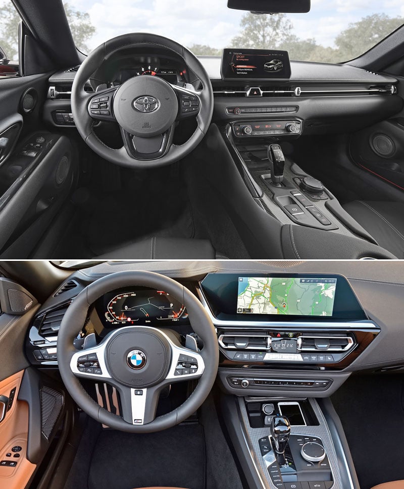 Mnoho podobného nájdeme aj v interiéri. Supra si od mníchovskej dvojičky vypožičala volič automatickej prevodovky, panel ovládajúci klimatizáciu jednoducho nájdeme tu mnohé prvky známe z moderných alebo starších modelov značky BMW. Avšak materiály a dielenské spracovanie je v prípade Z4, ako býva u BMW zvykom, na prémiovej úrovni. Interiér Toyoty pôsobí stroho v porovnaní z nemeckým bratom a menej hodnotne. Exteriér oboch modelov sa nesie v duchu filozofie aktuálnych dizajnérskych zmien a nových trendov, ktoré sú charakteristické pre každú z oboch značiek.