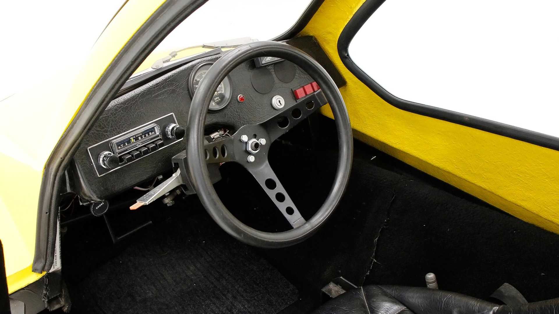 Ako to vyzerá v interiéri? Zmestí sa sem jeden cestujúci a malý úložný priestor poskytne miesto pre osobné veci. Jednoduchá palubná doska obsahuje rad tlačidiel pre funkčné prvky ako sú svetlá, stierače a dokonca sa dnu zmestilo aj rádio.
