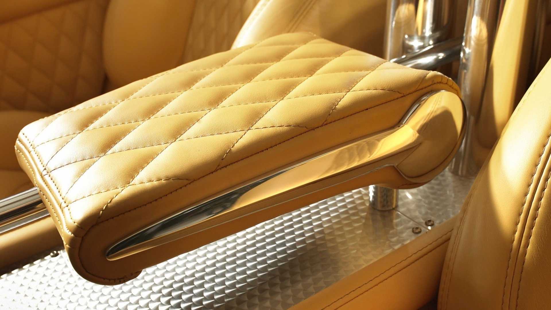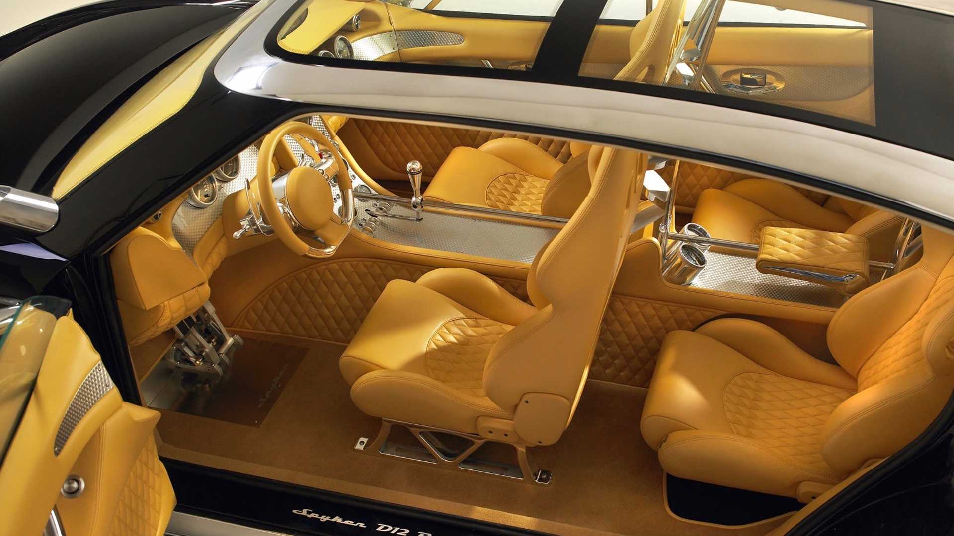 Ak sa detailnejšie pozrieme do kabíny, uvidíme nádherné čalúnenie z kože v kombinácii s brúseným hliníkom. Vysoká stredová konzola sa preplieta celou dĺžkou auta a delí priestor na štyri samostatné sedadlá. Tento krásny a zároveň zložitý priestor bol plný zaujímavých leteckých detailov, ktoré si chcel Spyker ako výrobca lietadiel uchovať. A čerešnička na torte? Panoramatická strecha v plnej dĺžke.
