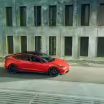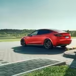 Elektromobil, ktorý nie je ani náhodou pomalý a nemotorný, však svoje prednosti navonok príliš neukazuje. V Novitecu sa preto rozhodli, že trojka si zaslúži o niečo výstrednejší vzhľad. Prvým krokom bola netradičná farba. Teslu obalili do matnej červenej fólie, doplnenej čiernymi detailmi. A ako je už u tohoto úpravcu zvykom, nesmie chýbať množstvo karbónu. Na prednej strane dominuje výrazný splitter, dodávajúci nielen opticky nižšie položenie, ale aj lepšiu stabilitu. Aby bol dizajn jednotný, rovnakú kúru dostali aj bočné prahy a tiež zadok auta. Tam pribudol nový difúzor, či imitácia spojlera na kufri. Samozrejme, všetko vyhotovené z uhlíkových vlákien. Zovňajšok uzatvárajú masívne 21-palcové kované disky od značky Vossen, dostupné v neuveriteľných 72 farebných prevedeniach.