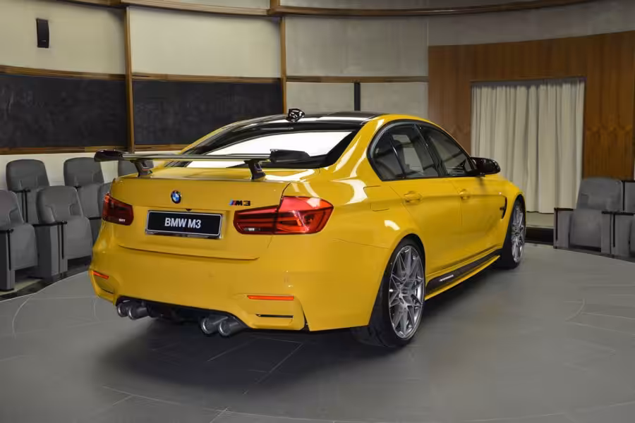 To, že Spojené arabské emiráty sú krajina neobmedzených možností sme si už všimli a tak nebude asi prekvapením, že práve do tohto kútu sveta išla upravená M3, ktorá bude jediná svojho druhu. Na sebe má krásny lak Speed Yellow, ktorý patrí do sekcie Individual, no to nie je všetko. Výnimočnosť spočíva hlavne v dieloch. Na žiadosť budúceho majiteľa dostala predný / zadný spojler, difúzor a aj kapotu z M4 GTS. Okrem iného má výfukový systém M Performance s titánovými koncovkami.
