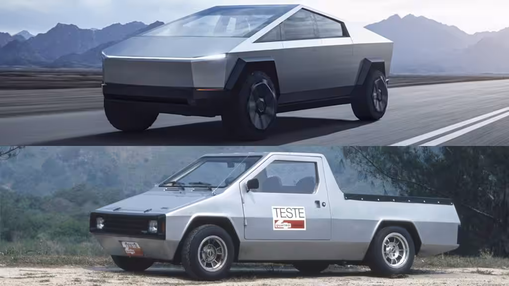 Už pár dní po odhalení Cybeetrucku sa podarilo vypátrať jeho korene a evidentne aj dizajnovú inšpiráciu. Stal sa ňou skoro 40 rokov starý brazílsky pickup Renha Formigao, postavený na podvozku VW 1600. Nikto nemôže poprieť, že určitá podobnosť tu je.