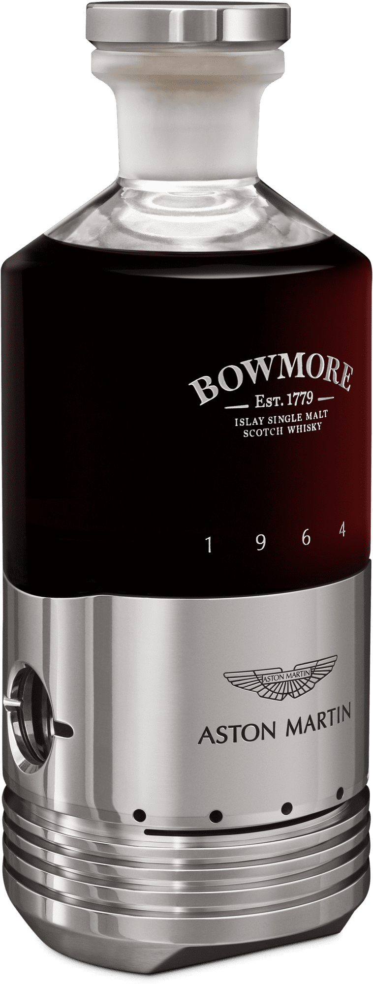 Niet sa preto čo diviť, že obe legendárne značky spojili svoje sily a pri blížiacom sa výročí svojich slávnych produktov pripravili výnimočnú edíciu, nazvanú Black Bowmore DB5 1964. Vyrobí sa z nej len 25 fliaš, ktoré budú zaujímavé nielen obsahom, ale aj balením – pôjde skutočne o umelecké dielo. Fľaša aj kazeta budú vyrábané ručne. Samotná fľaša je dielom luxusnej sklárne a dizajnérskeho štúdia Glasstorm. Jej súčasťou bude aj piest z motora Astonu Martin DB5. V kazete z luxusnej kože bude ďalej brožúra popisujúcu legendárnu whisky a aj históriu vozu Aston Martin DB5