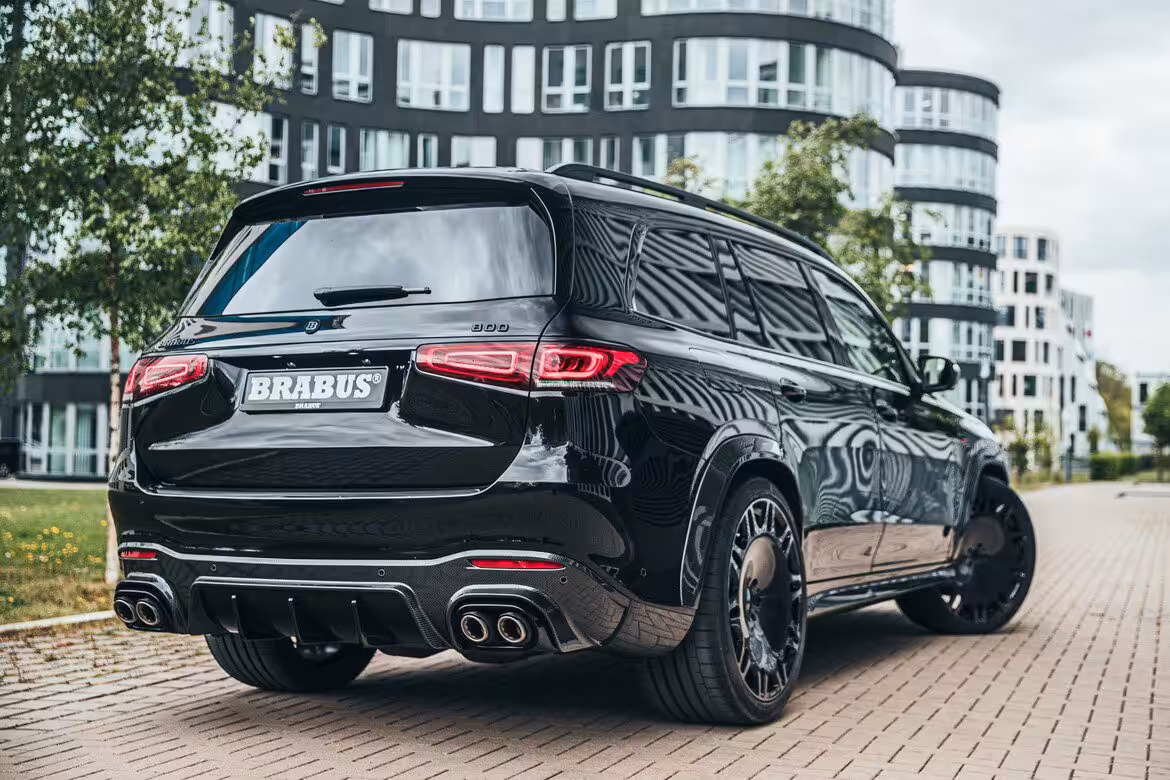 Základom sa stal najvýkonnejší model Mercedes-AMG GLS 63. GLS sa prezentuje skôr ako elegantné a luxusné vozidlo, čo sa po úprave od Brabusu zmenilo na športové SUV. Ako si môžeme všimnúť na aute sa nachádzajú karbónové prvky, ktoré znižujú hmotnosť a zaisťujú optimálnu aerodynamiku. Maska chladiča vyzerá tiež inak vďaka špeciálnym nasávacím otvorom na bokoch a dvom červeným pásikom. Do očí bijúce veľké Brabus disky s priemerom až 24 palcov sú obuté do pneumatík určených na športovú jazdu. Podľa cenníku môže jedna taká pneumatika stáť 400 a viac eur. Auto dostalo aj zníženie o 25 milimetrov po úprave vzduchového podvozku.