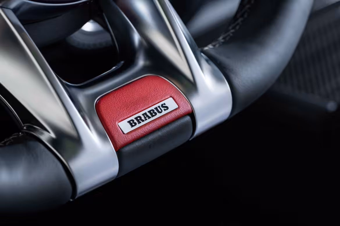 Interiér disponuje mnohými detailmi Brabus. Napríklad pri vstupe do interiéru nás privítajú Brabus koberčeky, Brabus pedále a po posadení sa do krásnych sedačiek, pohľad na volant, ktorý tiež dostal pár Brabus detailov. Taktiež hlavne nové čalúnenie prešívané diamantovým vzorom a kožou, alebo alcantarou. Dekoračné prvky sú z karbónu.
