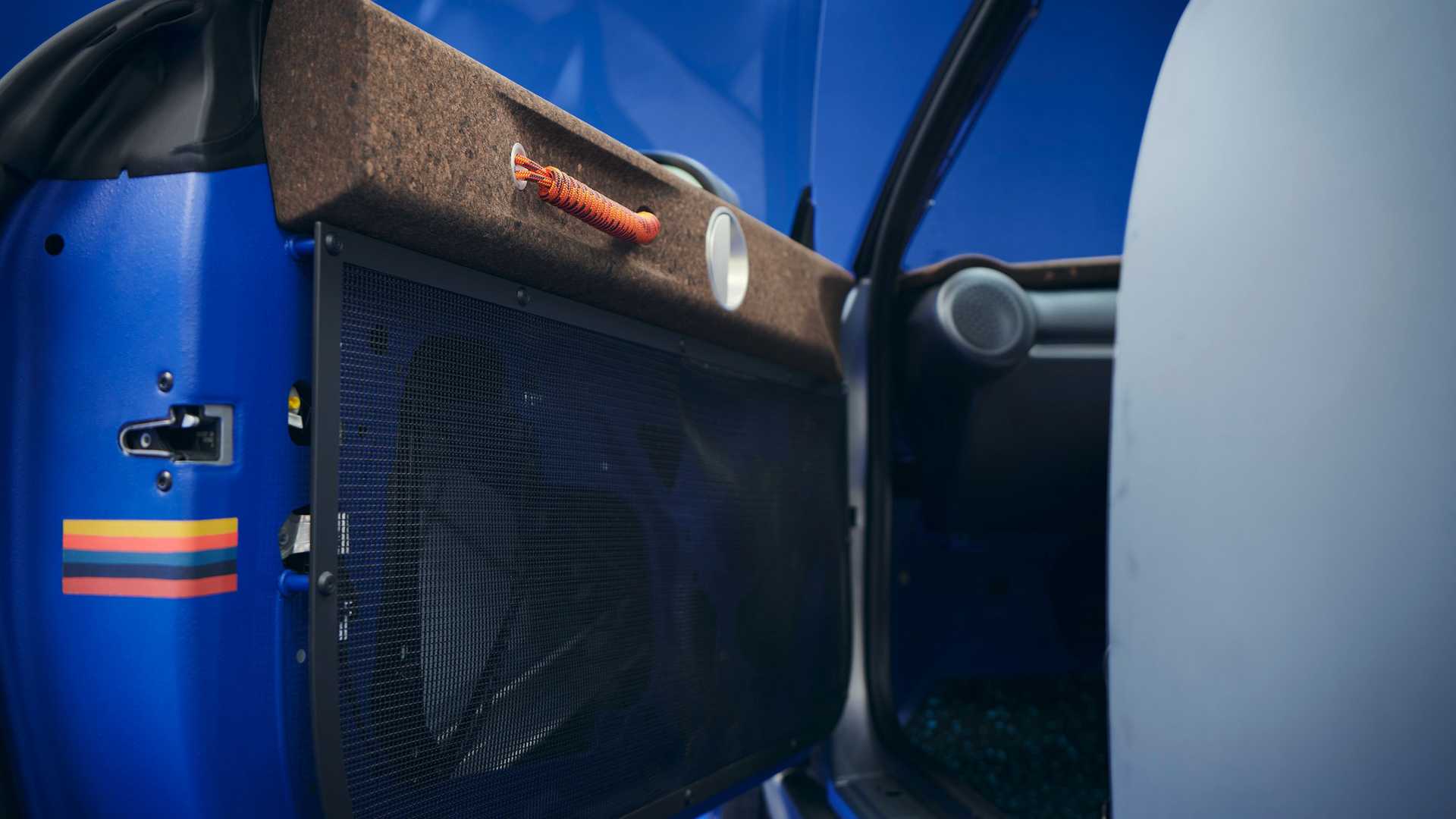 Koberce na podlahe sú z recyklovanej gumy, vrchná časť palubovky spolu s tienidlami a obložením dverí sú zas z recyklovaného korku. Výplň dverí pozostáva zo sieťoviny a nájdete tu aj takú vec, ktorou sú putá z horolezeckého lana.
