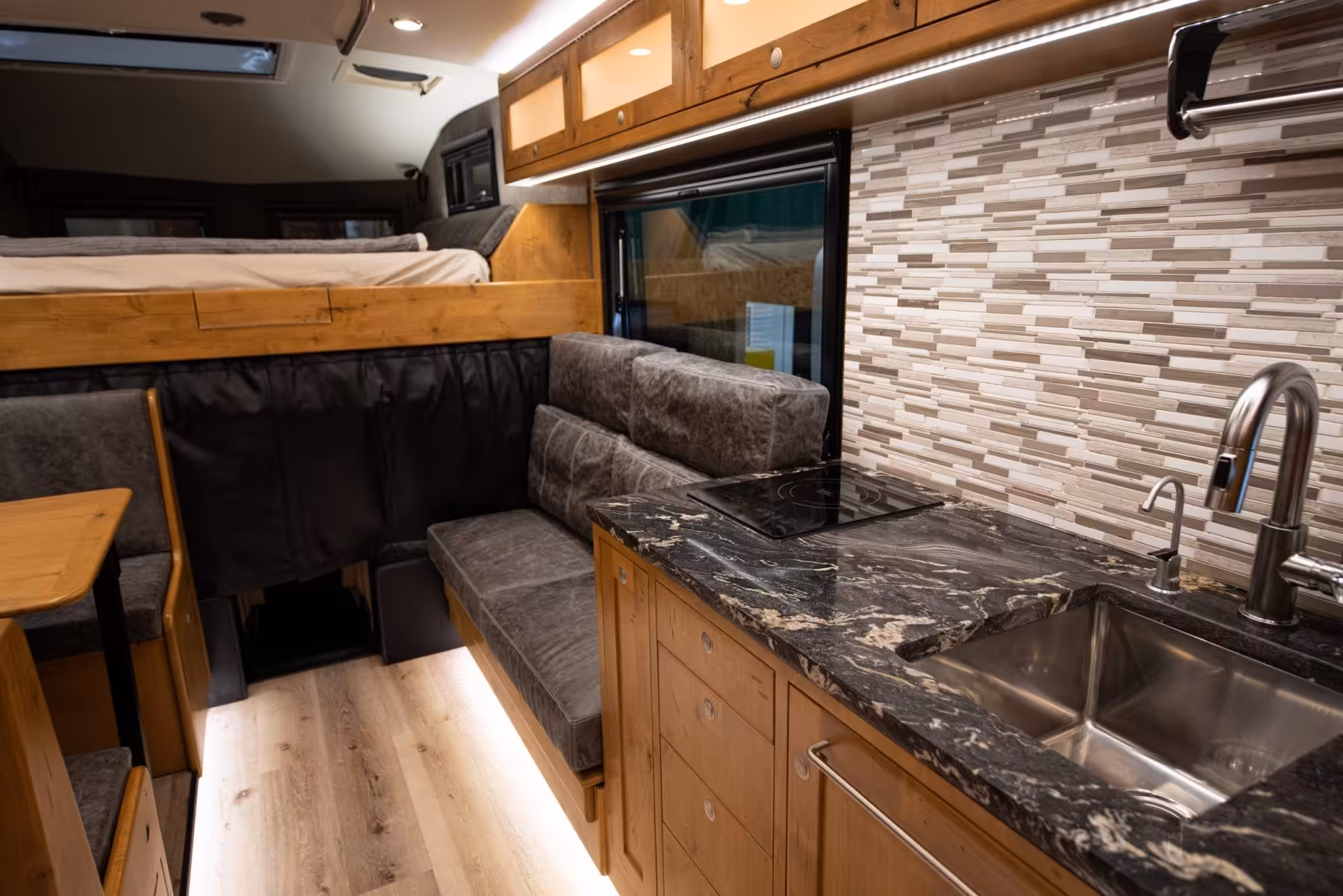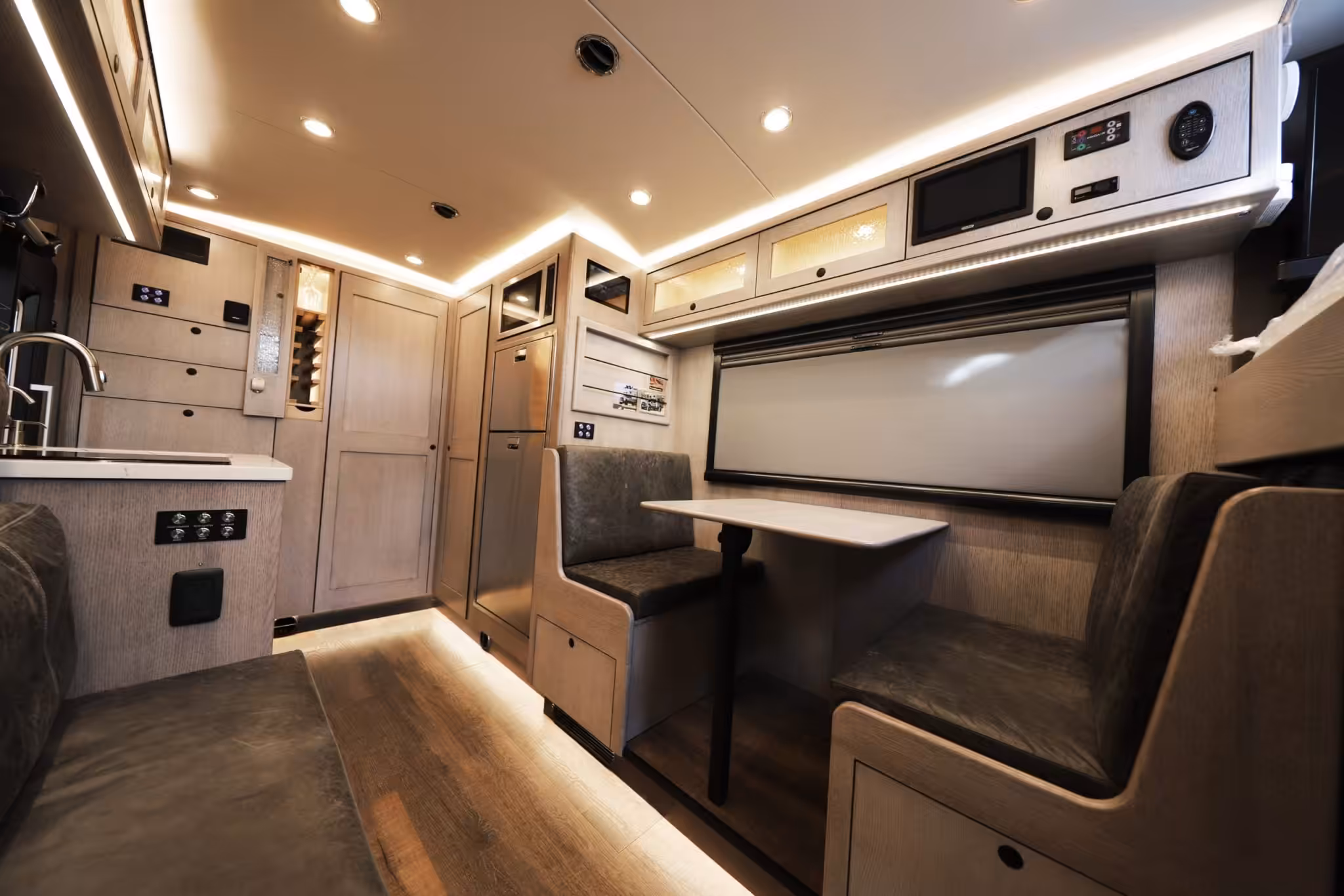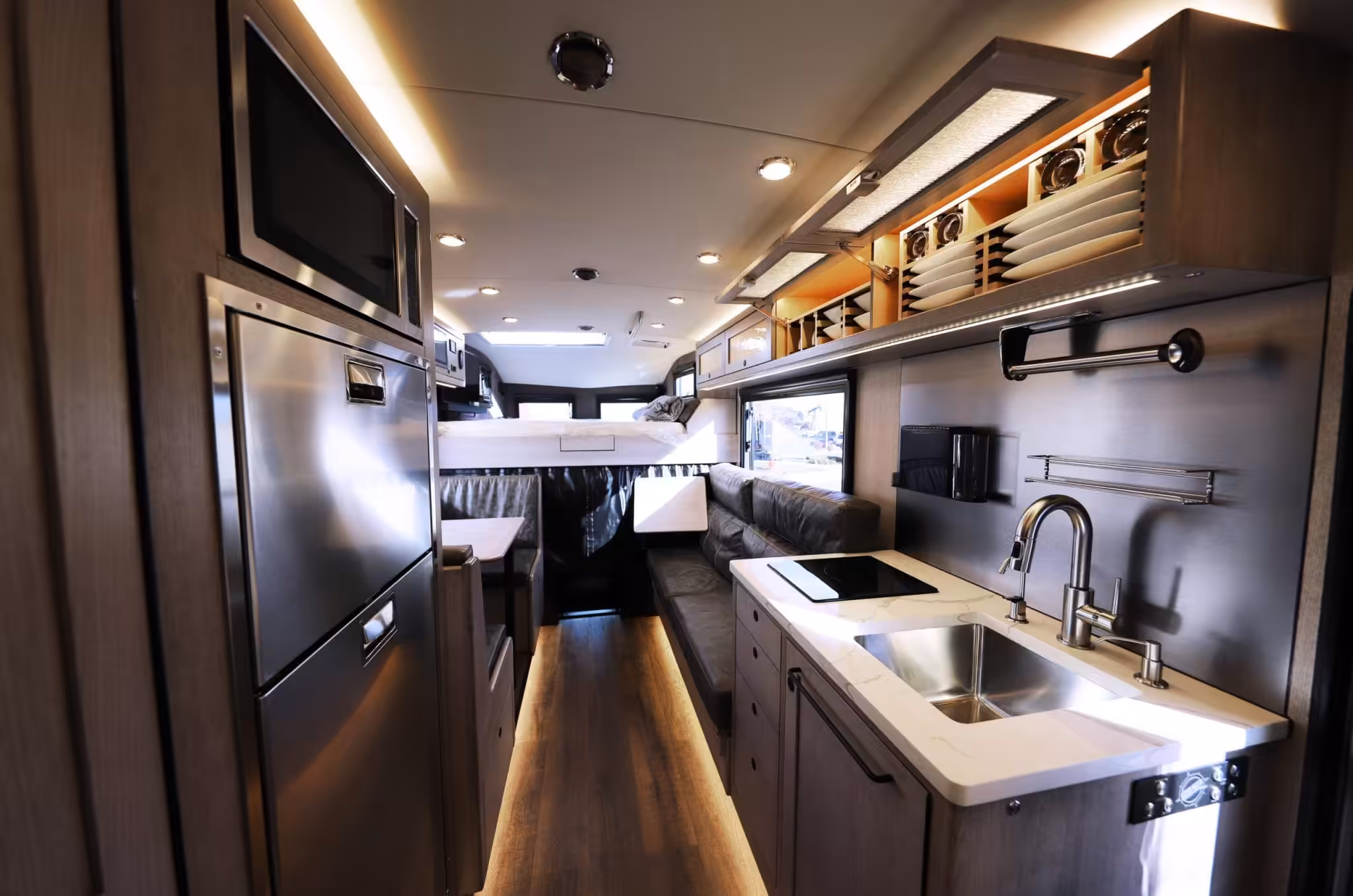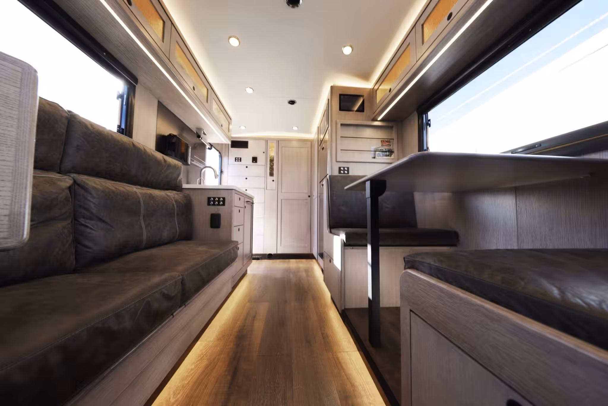 Dostávame sa k časti aj vďaka, ktorej je obytný automobil tak zaujímavý. Okrem iného ponúka vo svojej obytnej časti pohodlné posedenie pre 6 osôb a pohodlný oddych na lôžku pre 4 osoby. Samozrejme tu môžeme nájsť aj obývačku, vybavenú kuchyňu, kúpeľňu a veľkú posteľ. Kúpeľňa má k dispozícii sprchu a tiež ventilačný systém. Zaujímavou vychytávkou je aj sušiak na oblečenie. V kuchyni sa nachádzajú úložné priestory a chladnička s kapacitou 226 litrov, mikrovlnka, varná doska a kávovar. Interiér je však dostupný až v šiestich konfiguráciách, ktoré dostali pomenovania po známych mestách v Colorade.