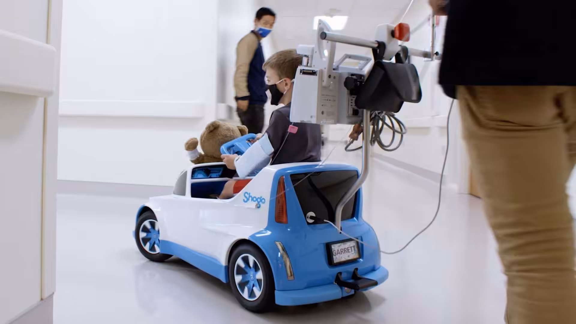 Autíčko je navrhnuté tak, aby sa deti ľahko zmestili tým, že vynechali dvere a strechu. Na volante je centrálna poloha sedenia s funkciou stop-and-go pre ľahký prístup. Dosahuje rýchlosť až 5 míľ za hodinu, čo je v prepočte cca 8 km/h a vie spomaliť na 1,5 km za hodinu. Rýchlosť však ovláda opatrovateľ alebo zdravotná sestra. Elegantný dizajn je tiež funkčný, s tlačnou tyčou na zadnej strane, ktorá obsahuje držiak IV palice a miesto na prenášanie rôznych zariadení napr. infúzií a iného vybavenia.