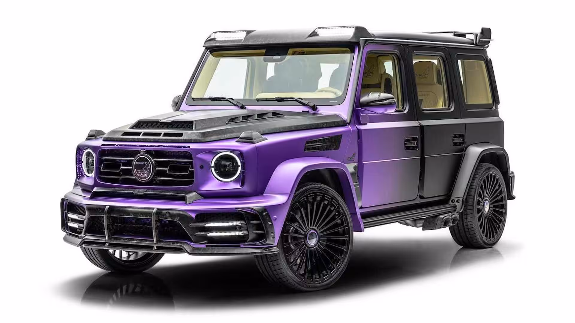 Exteriér dostal dvojfarebné lakovanie. Fialový lak na prednej polovici a čierny na zadnej polovici. V kombinácii so šialeným body-kitom je prevedenie brutálne dokonca aj pre firmu Mansory. Počkajte však, kým uvidíte interiér.