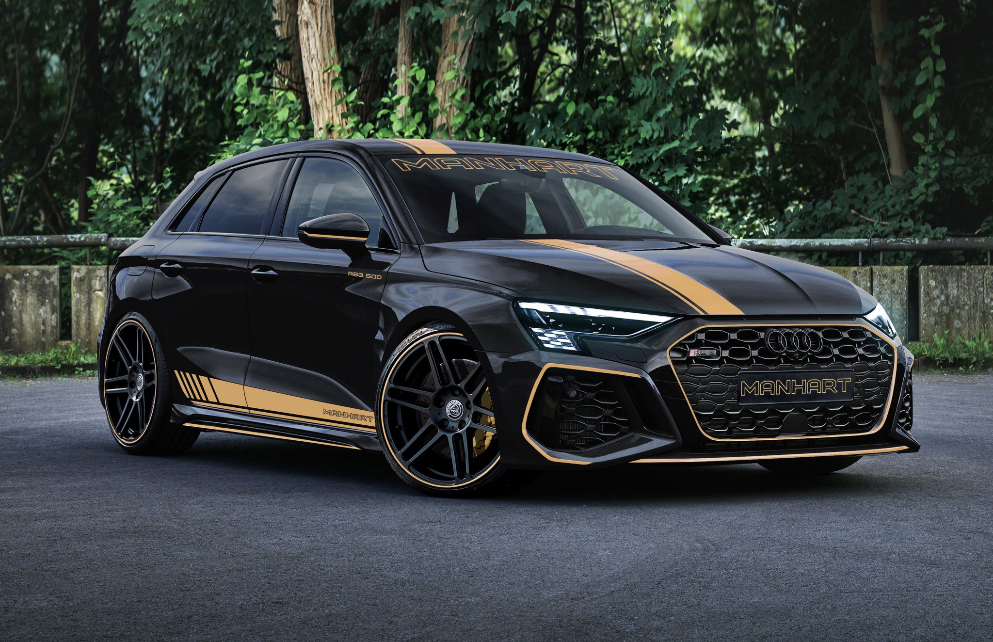 Finálne vyobrazenie bude čochvíľa. Priložené fotografie hovoria o tom, ako auto bude vyzerať. Manhart RS3 500 je ešte stále v produkcii. Z poskytnutých fotografií však vieme, že ostrý bodykit bude pre novinku určite prínosom. Modely RS 3 taktiež dostanú nové 20“ kolesá Concave One. Sériovka má k dispozícií iba 19“ kolesá. Manhart Audi RS3 500 dostane taktiež nové výfukové potrubie pre lepší a športovejší zvuk. Chýbať nesmú zlaté doplnky na karosérií, ktoré sú charakteristickým znakom úpravcu. Predobjednávky sú už v plnom prúde, no cena úprav zatiaľ ešte nebola zverejnená.