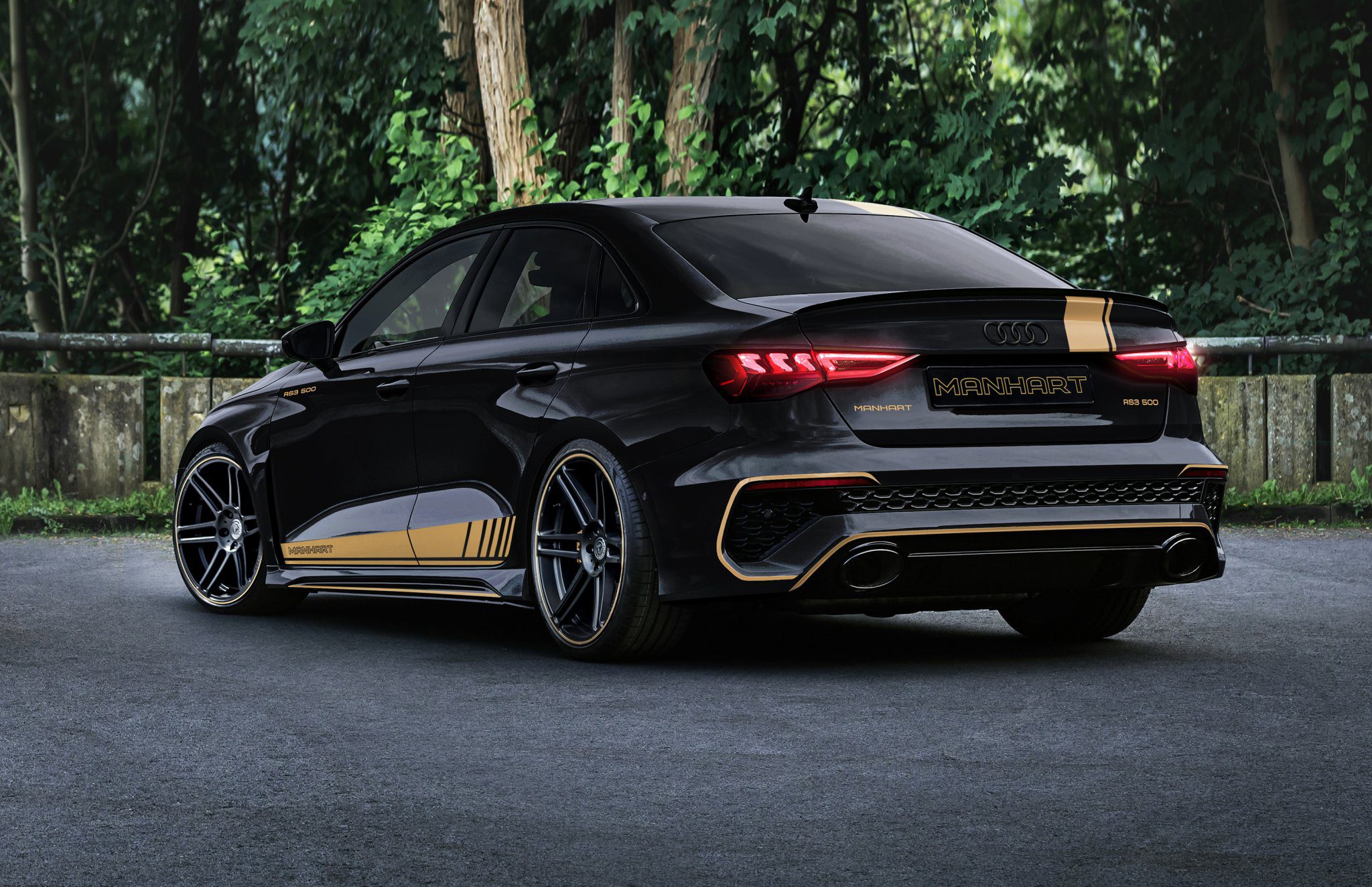 Finálne vyobrazenie bude čochvíľa. Priložené fotografie hovoria o tom, ako auto bude vyzerať. Manhart RS3 500 je ešte stále v produkcii. Z poskytnutých fotografií však vieme, že ostrý bodykit bude pre novinku určite prínosom. Modely RS 3 taktiež dostanú nové 20“ kolesá Concave One. Sériovka má k dispozícií iba 19“ kolesá. Manhart Audi RS3 500 dostane taktiež nové výfukové potrubie pre lepší a športovejší zvuk. Chýbať nesmú zlaté doplnky na karosérií, ktoré sú charakteristickým znakom úpravcu. Predobjednávky sú už v plnom prúde, no cena úprav zatiaľ ešte nebola zverejnená.