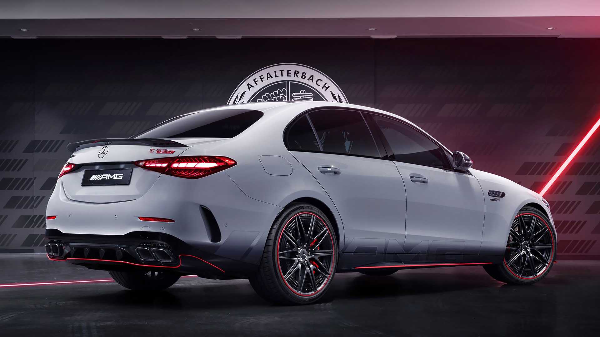 Novinka je odetá do fabrickej farby manufactur Alpine Grey Uni, ktorá pri konci dverí prechádza do čisto čiernej farby. Lak je doplnený o červené doplnky, nápisy a samozrejme čerešničkou na torte sú 20“ kolesá z ľahkých zliatin AMG v matnej čiernej konfigurácii, znova s červenými doplnkami.