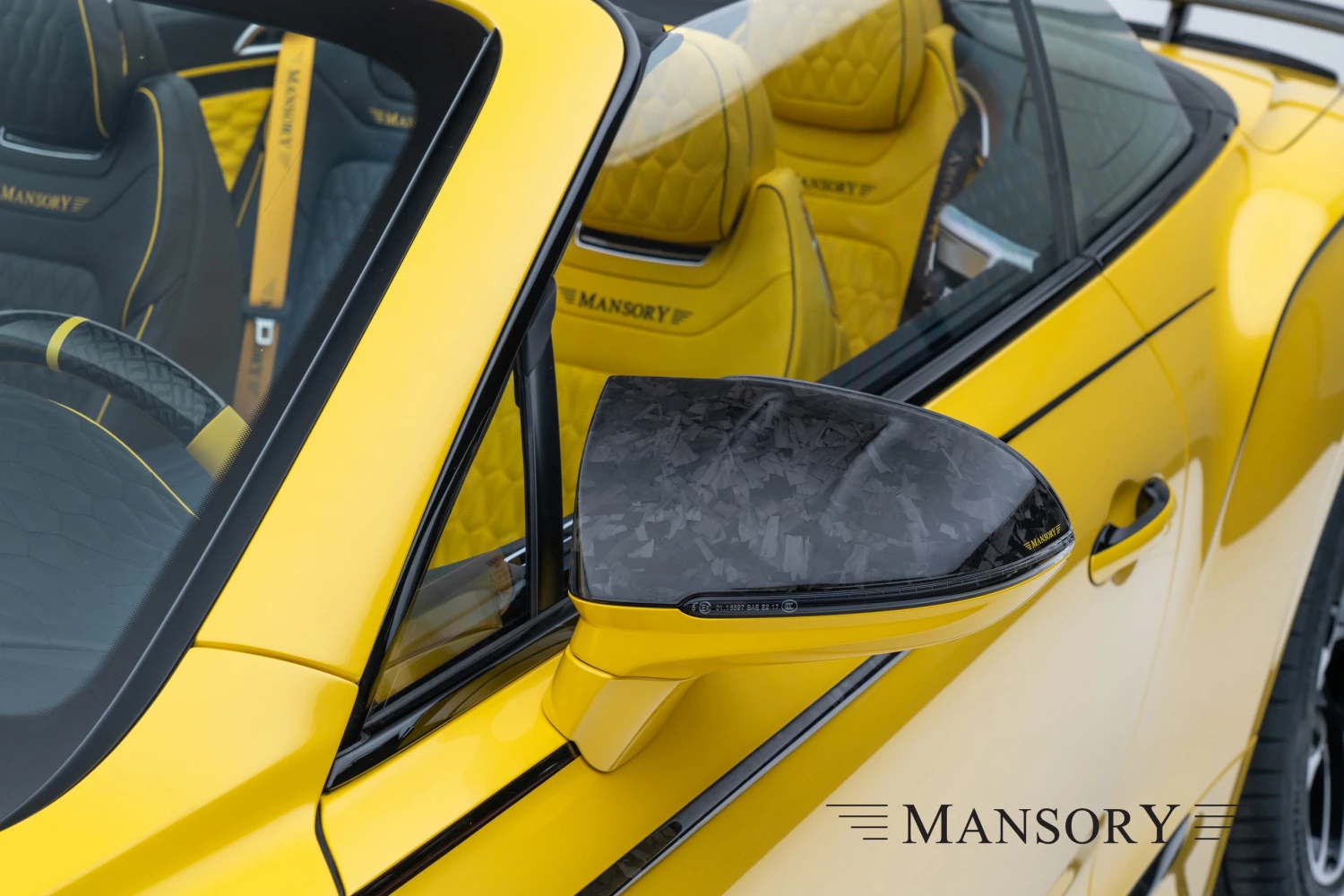 Osí motív nenájdeme iba na karosérii, ale ako je tomu zvykom, tak aj v interiéri vozidla. Na jednej strane nájdeme žlté sedadlá, na druhej čierne. Stredová konzola je doplnená o plaketu s nápisom „Mansory Vitesse One of One“.