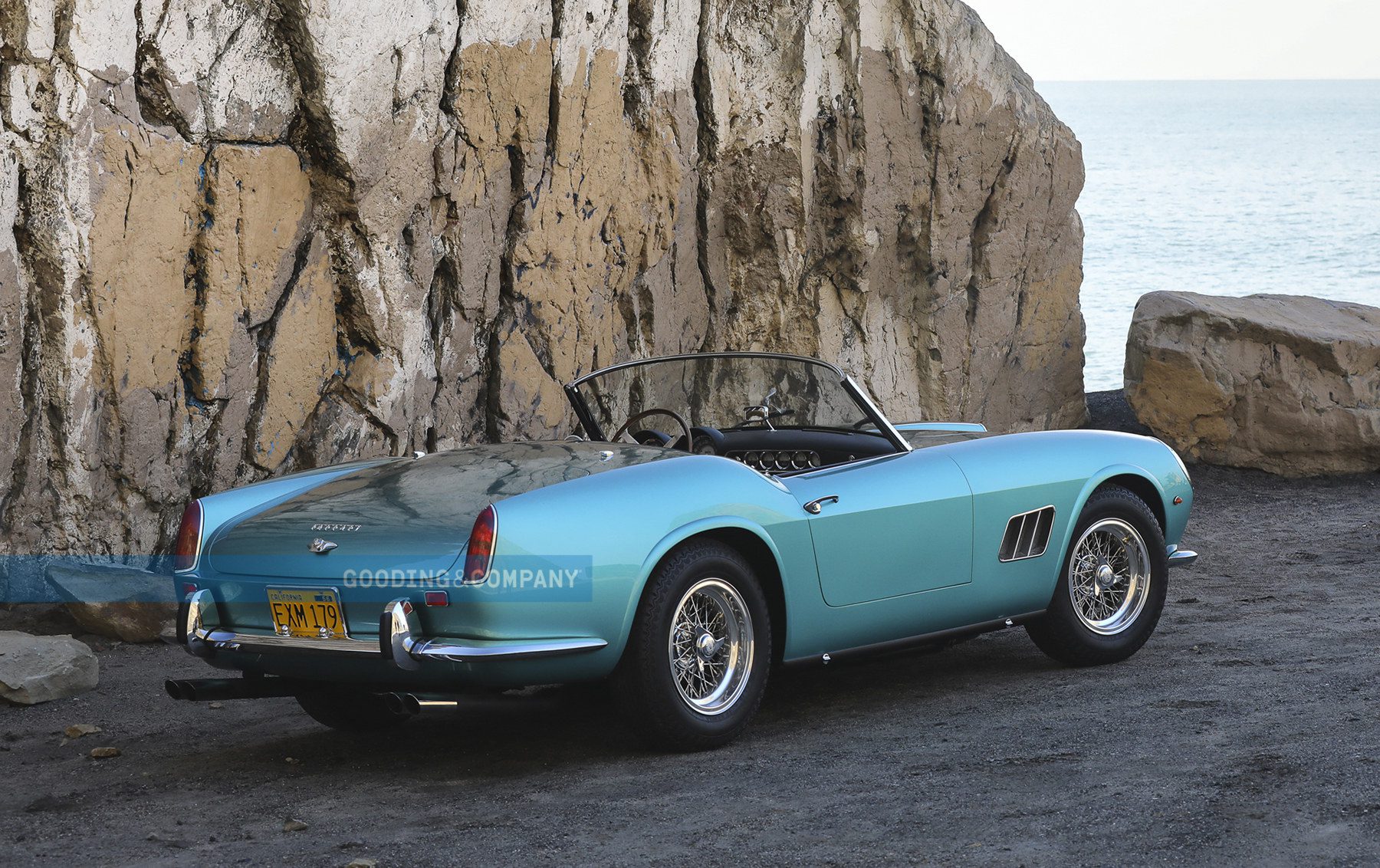 Ferrari California je samo o sebe vzácnym kusom vozidla. Čo sa týka amerického trhu, tu sa talianska automobilka rozhodla predĺžiť rázvor na svojom modeli a z krátkeho sa razom stal dlhý. Vozidlo bolo vystavené na autosalóne v New Yorku v roku 1962. Ide o veľmi vzácny kus, pretože modelov California bolo vyrobených iba 106 kusov. Z toho na krátkom rázvore vzniklo iba 56 a tých, ktoré mali aj zakryté svetlá, bolo iba 37. Aby týchto unikátnych prvkov nebolo málo, tak výnimočný je aj samotný lak Azzurro Metalizzato s interným označením MM 16240. Takéto lakovanie dostalo iba pár kusov, ktoré vzišli z dielne Pininfarina.
