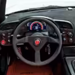 Plno karbónu nájdeme aj v interiéri. Karbón tak našiel svoje miesto aj vo výplniach dverí, sedadlách od Recara či volante od firmy Momo. Veľa detailov si S2000R požičiava od svojich súrodencov z Hondy. Patrí sem napríklad tlačidlo klaksónu z Hondy NSX-R alebo aj radiaca páka z minulej verzie Civicu Type R. Na doladenie použili doplnky z alcantary a za zmienku určite stojí aj displej prístrojovej dosky od firmy MoTeC.