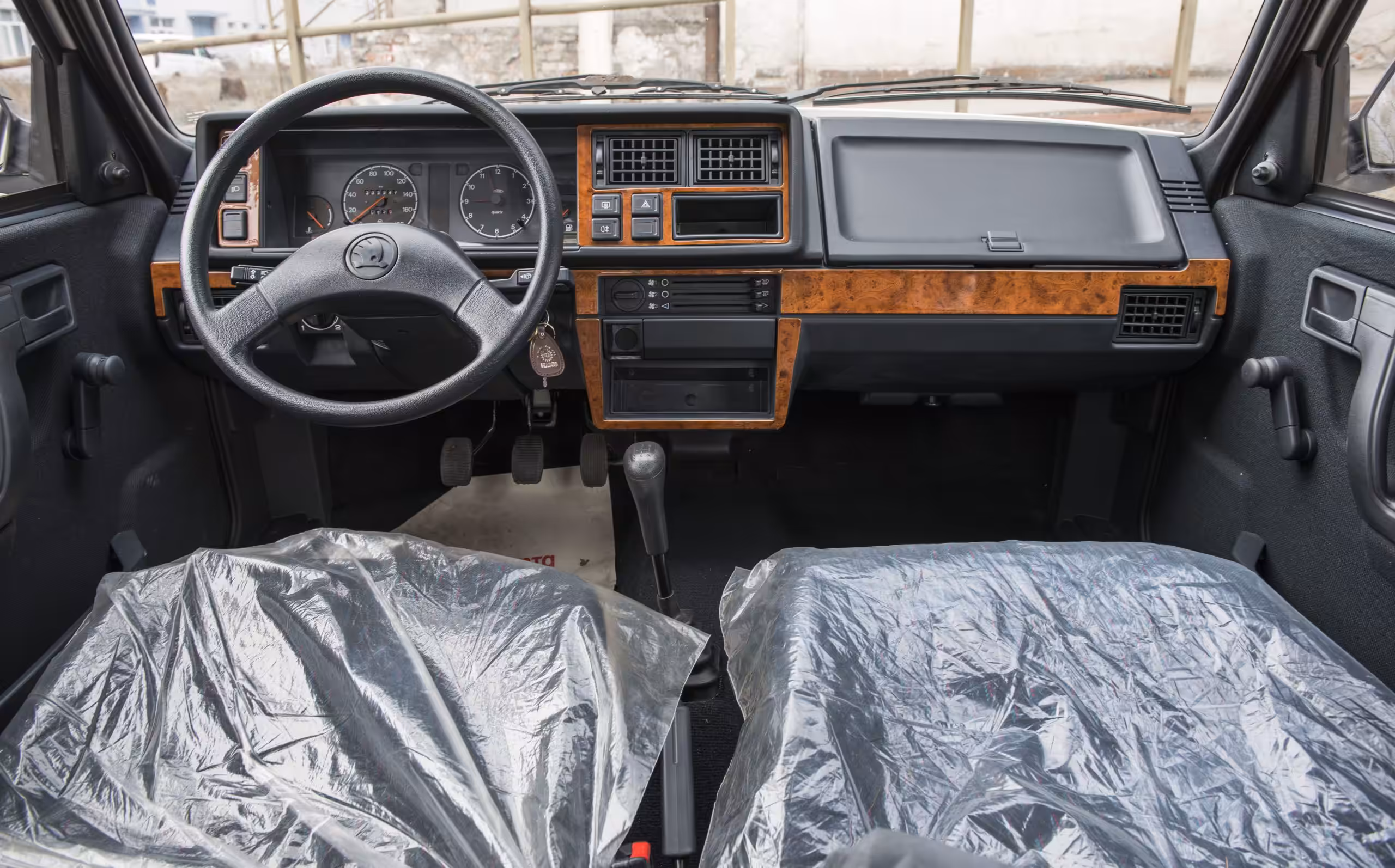 Pár nepôvodných detailov sa však predsa len nájde. Tri dekády v južanskej garáži sa na laku vozidla podpísali škrabancami od áut, ktorých vodiči manévrovali okolo. Viditeľné sú hlavne na hranách dverí. Auto pochádza z generácie po facelifte, ktorý bol predstavený práve v roku 1993. Na prvý pohľad ho prezrádza plastická maska so znakom uprostred. Pôvodný model mal v duchu originálneho návrhu logo automobilky na strane. Interiér je v šedom dekore. Pôvodný variant s béžovou palubnou doskou zodpovedal dobovému vkusu doznievajúcich osemdesiatych rokov, kedy sa Favorit v Československu aj v Európe prvýkrát predstavil.