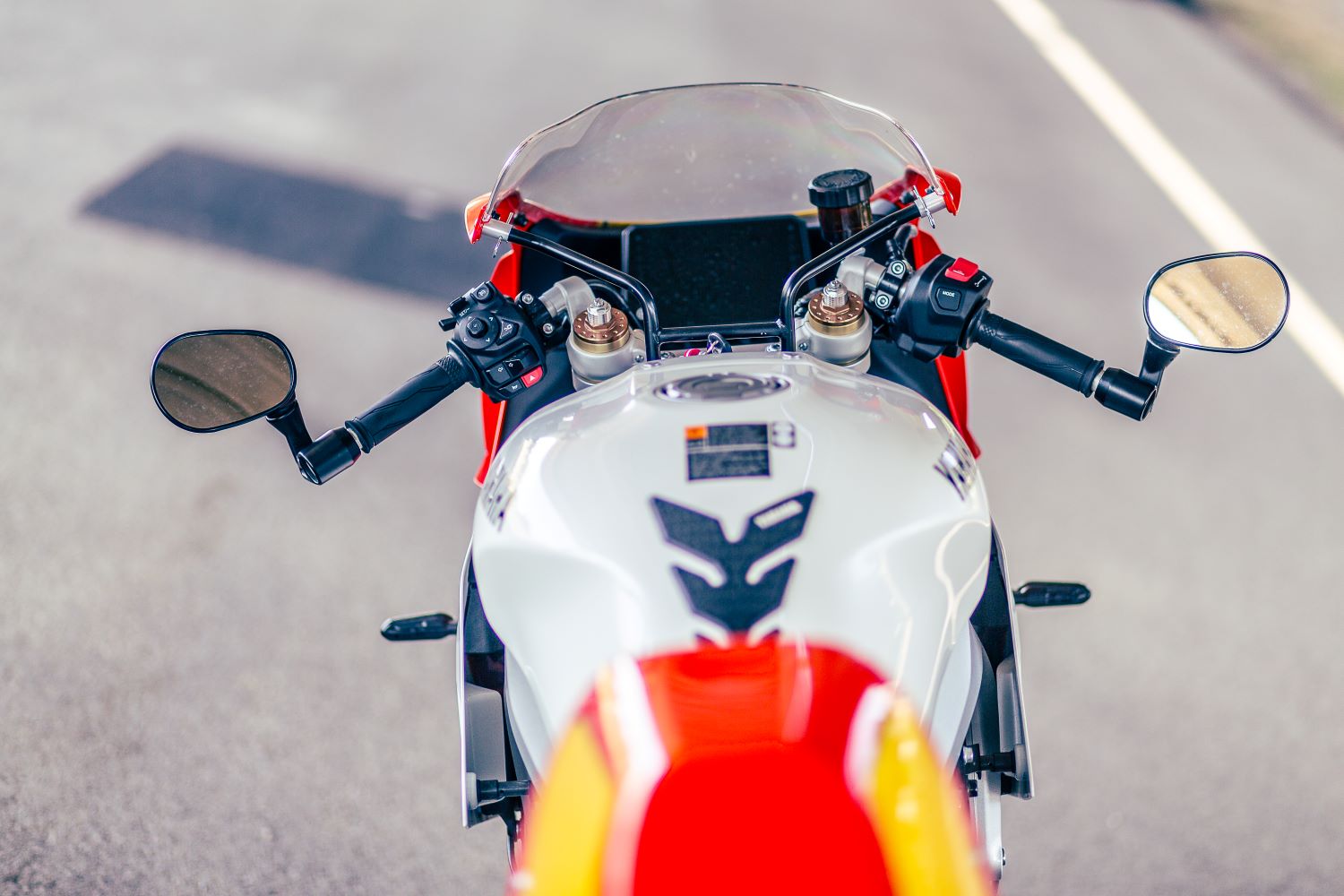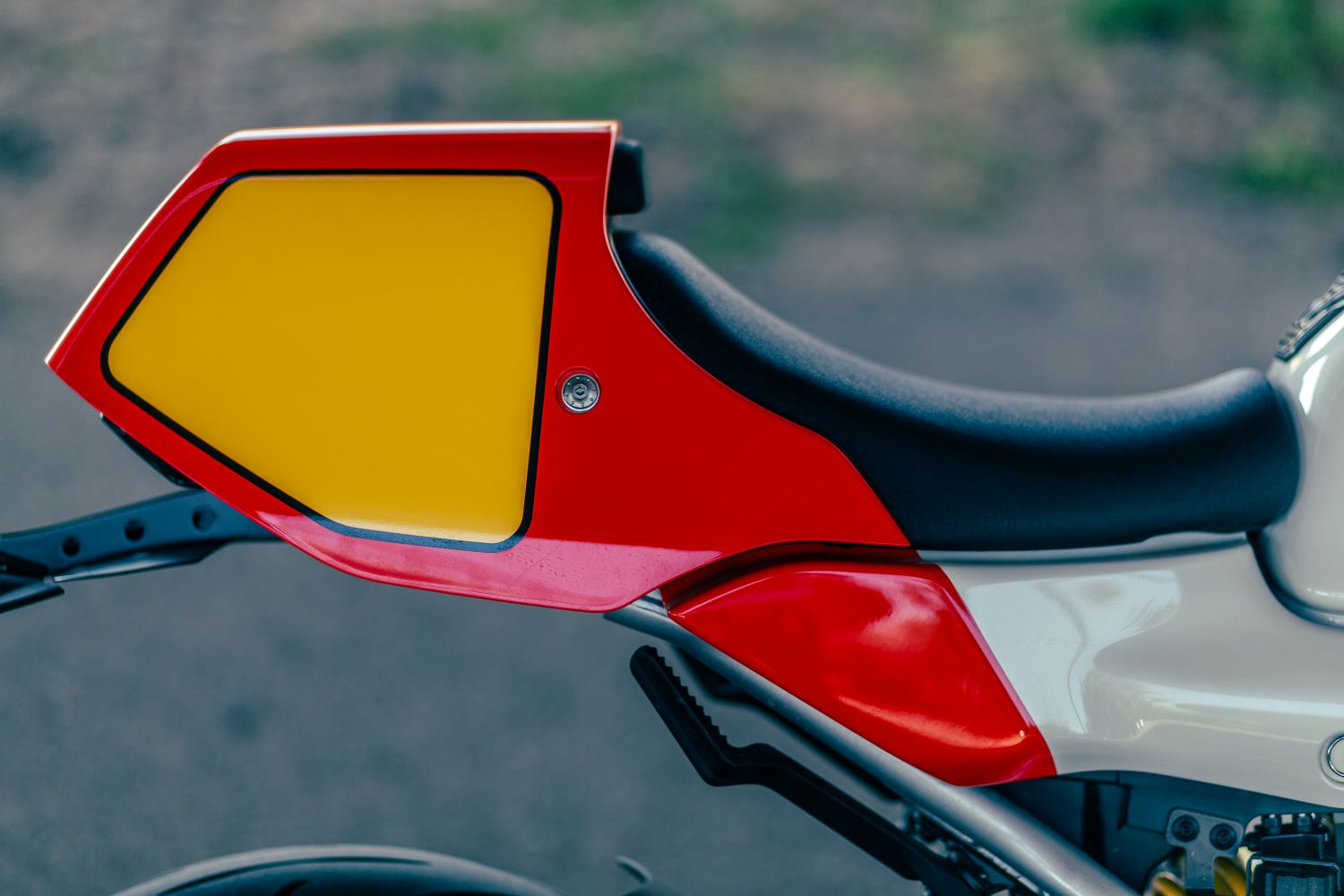 Do dizajnu motocykla je zakomponovaných množstvo retro doplnkov, ako napríklad závlačky držiace prednú masku kapotáže s pekne vykrojeným plexisklom, za ktoré sa dá zaľahnúť, rýchlospojky či odhalený Deltabox. A aby bolo všetko dotiahnuté do dokonalosti, má aj zadný kryt spolujazdcovho sedadla a polokapotáž. Ešte by za zmienku možno stála aj výmena výfukového systému.