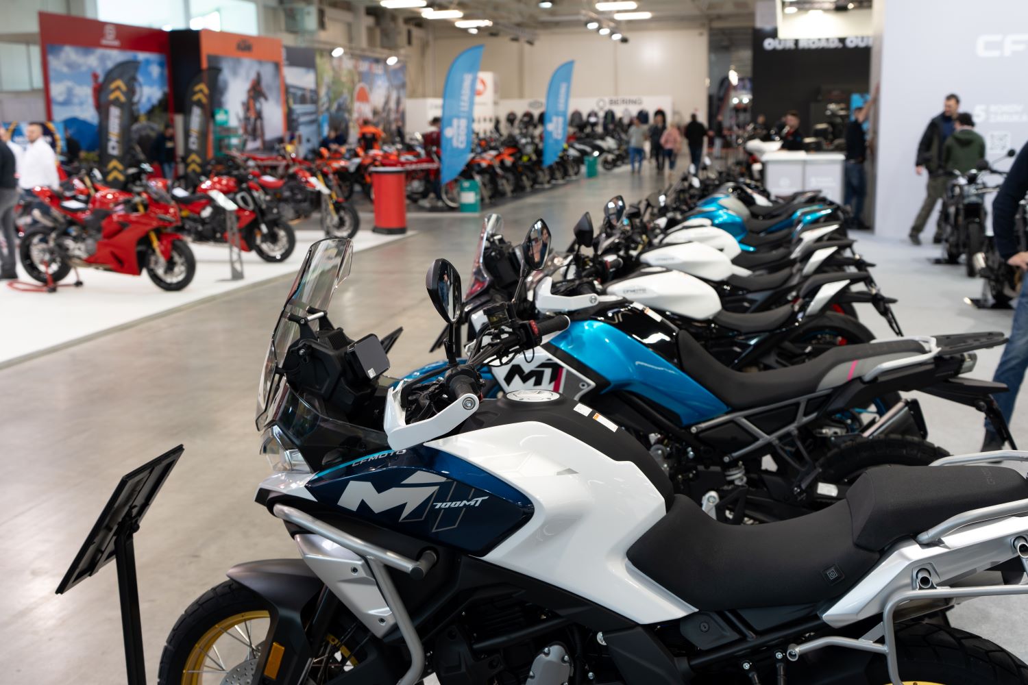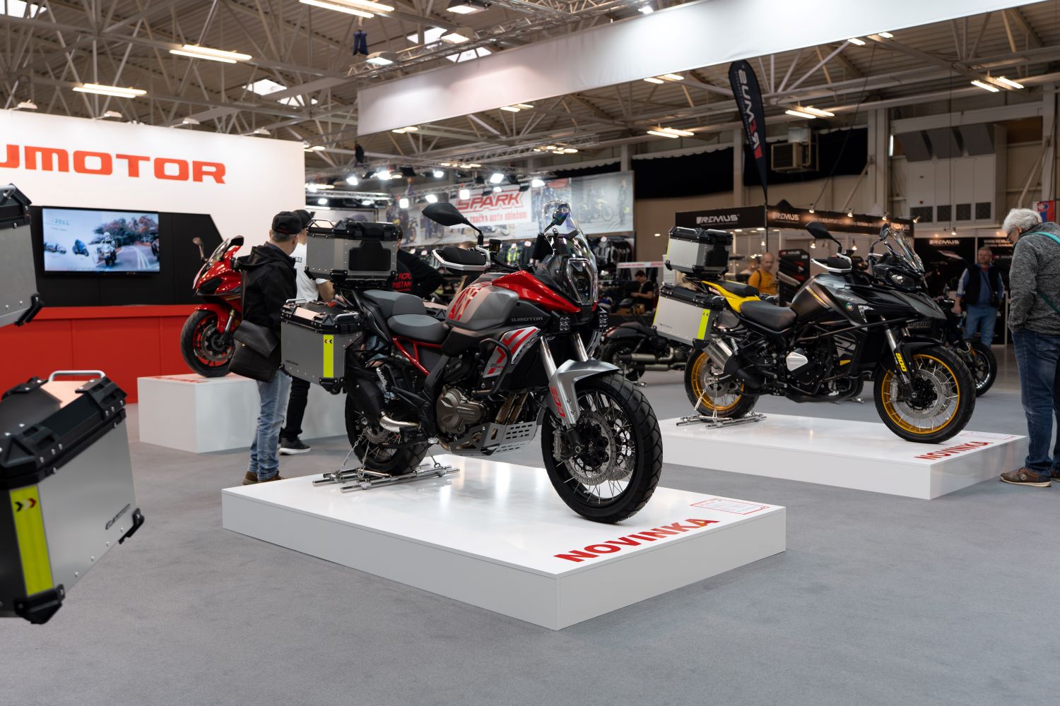 Zaujímavou časťou boli málo známe, alebo pre Európana úplne neznáme značky motoriek, skútrov a e-moto. Hneď na začiatku nás zaujal výrobca s názvom QJmotor. Stánok rozbalený na celkom veľkej ploche predstavoval dobre vyzerajúce adventure stroje, napríklad model SRT800S alebo SVT650X. Bez srandy veľké a dobre vyzerajúce motocykle. Takisto nás zaujal cruiser SRV700, ktorý na prvý pohľad pripomínal Vulcan. Veľmi zaujímavý bol športový SRK800RR. Rezonovala tiež uvádzaná cena pri všetkých modeloch, ktorá akoby bola bez dane alebo cla, pretože to boli naozaj prívetivé čísla.