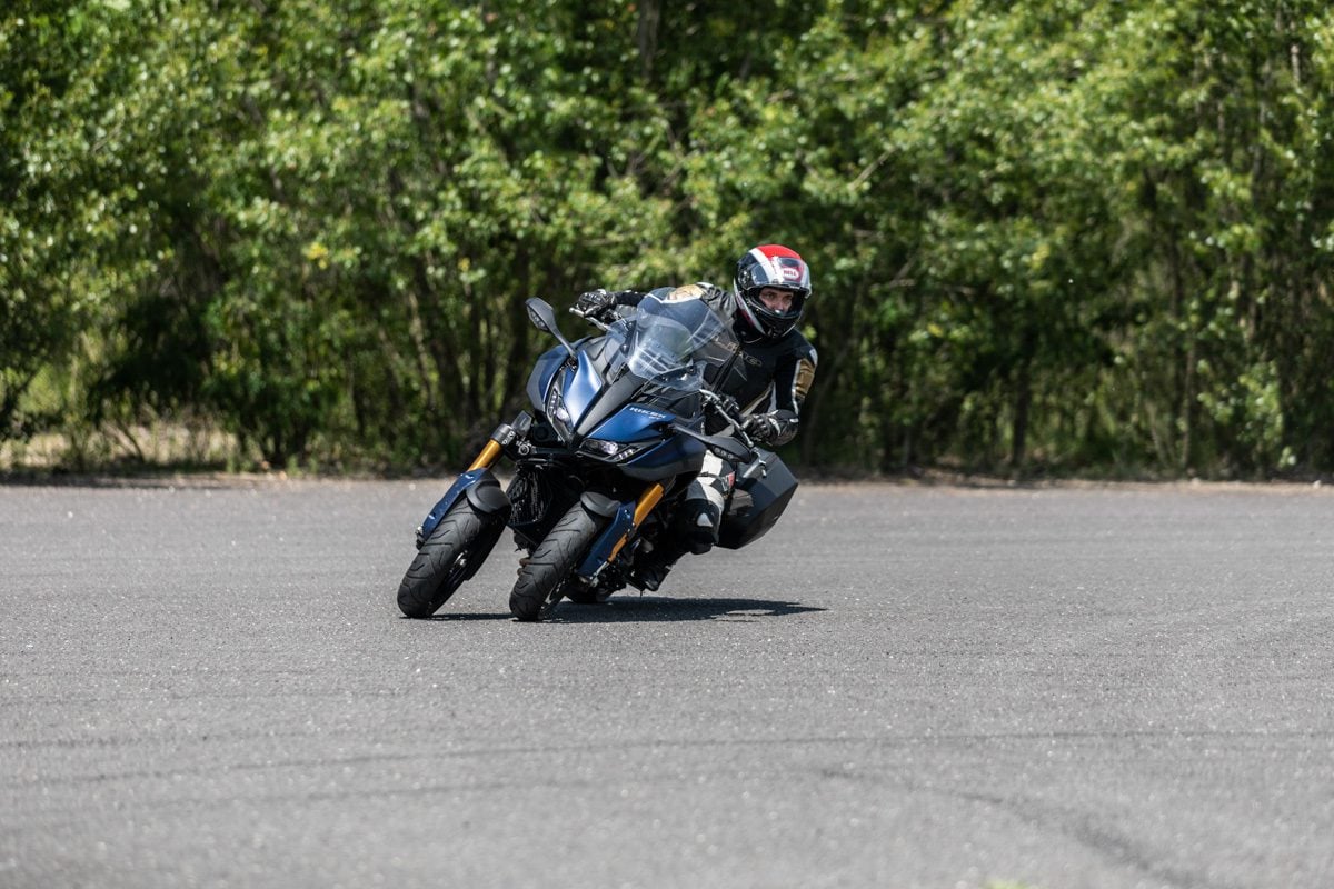 Na tomto stroji jednoducho zákrutami prechádzate rýchlejšie, plynulejšie a istejšie. Pripomíname len, že na to ale musíte ísť aspoň tridsiatkou. Aj keď vás v zákrute prekvapí nejaká nerovnosť, môžete si byť istí, že ak jedno koleso stratí priľnavosť, tak to druhé to bezpečne istí. Skôr sme mali problém s priľnavosťou zadného kolesa.