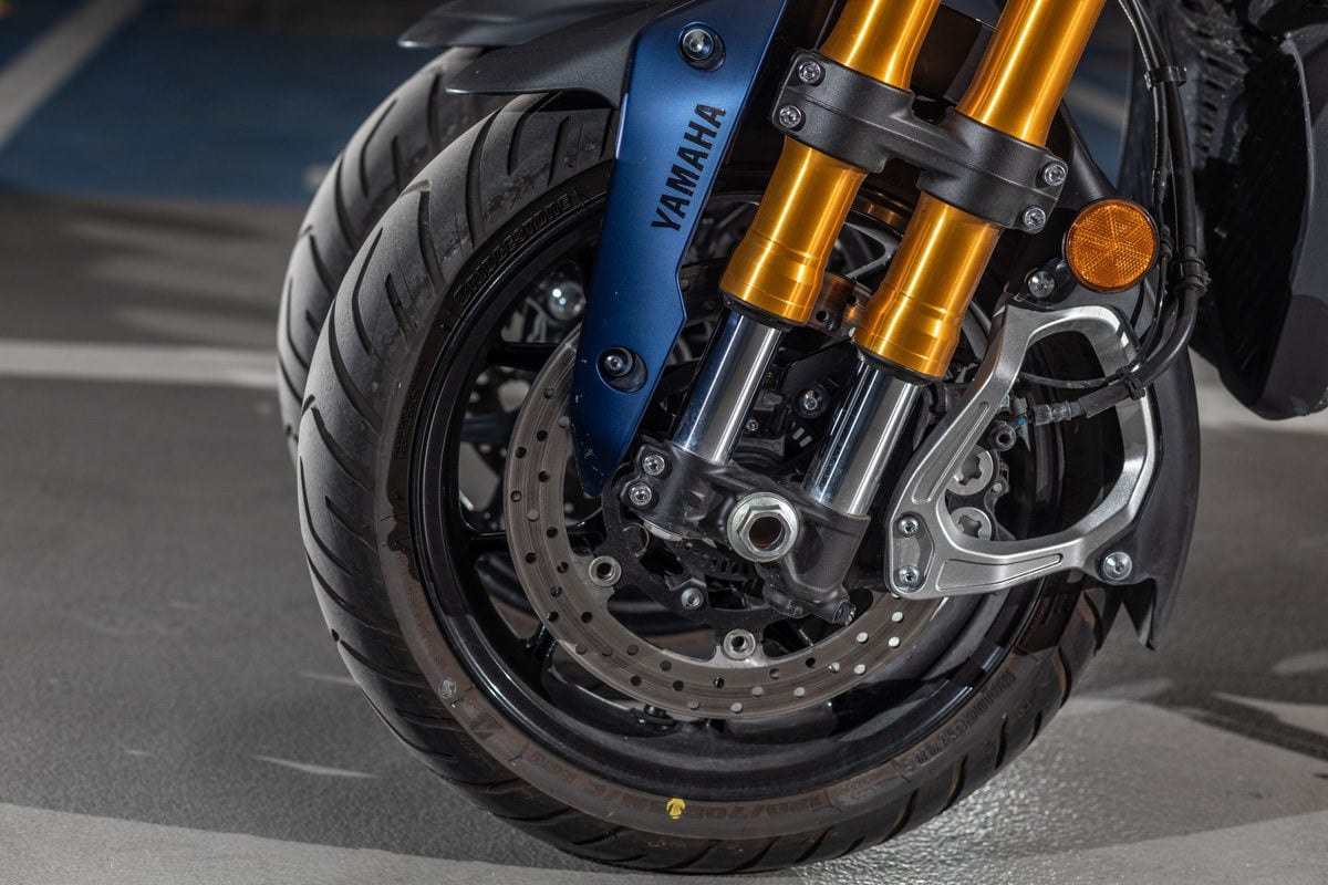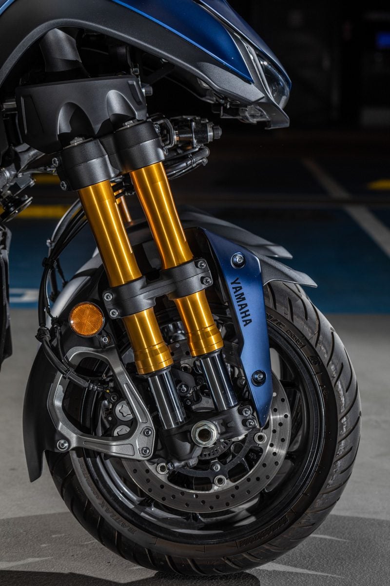 Že to nie je úplne bežná motorka si na prvý pohľad všimne aj absolútny laik – už len preto, lebo vpredu má dve a vzadu jedno koleso. Názor na toto riešenie si každý musí urobiť sám, nám sa však dizajn páči, rovnako ako to, že sa drží modelovej línie yamaháckych naháčov.