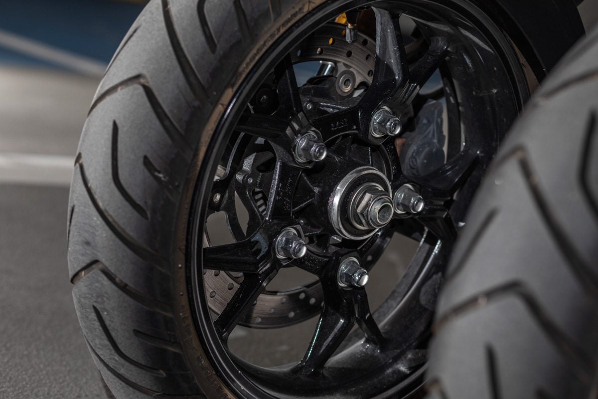 Tento nedostatok sa však vytratí už pri rýchlosti 30 kilometrov za hodinu. A čím rýchlejšie idete, tým viac oceňujete dve predné kolesá. Tie vám pri každom nájazde do zákrut dokazujú, že práve vďaka nim sú stabilita a schopnosť udržať predok pritlačený na asfalt takmer bez chyby.