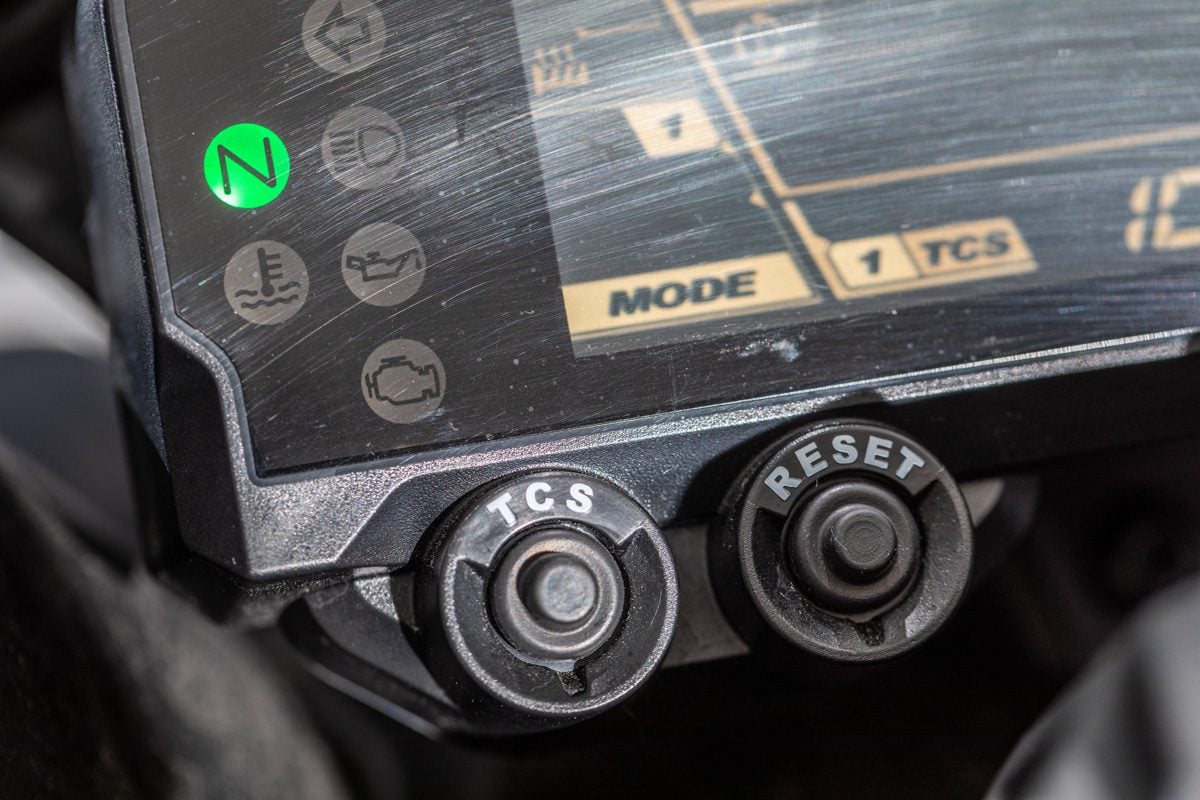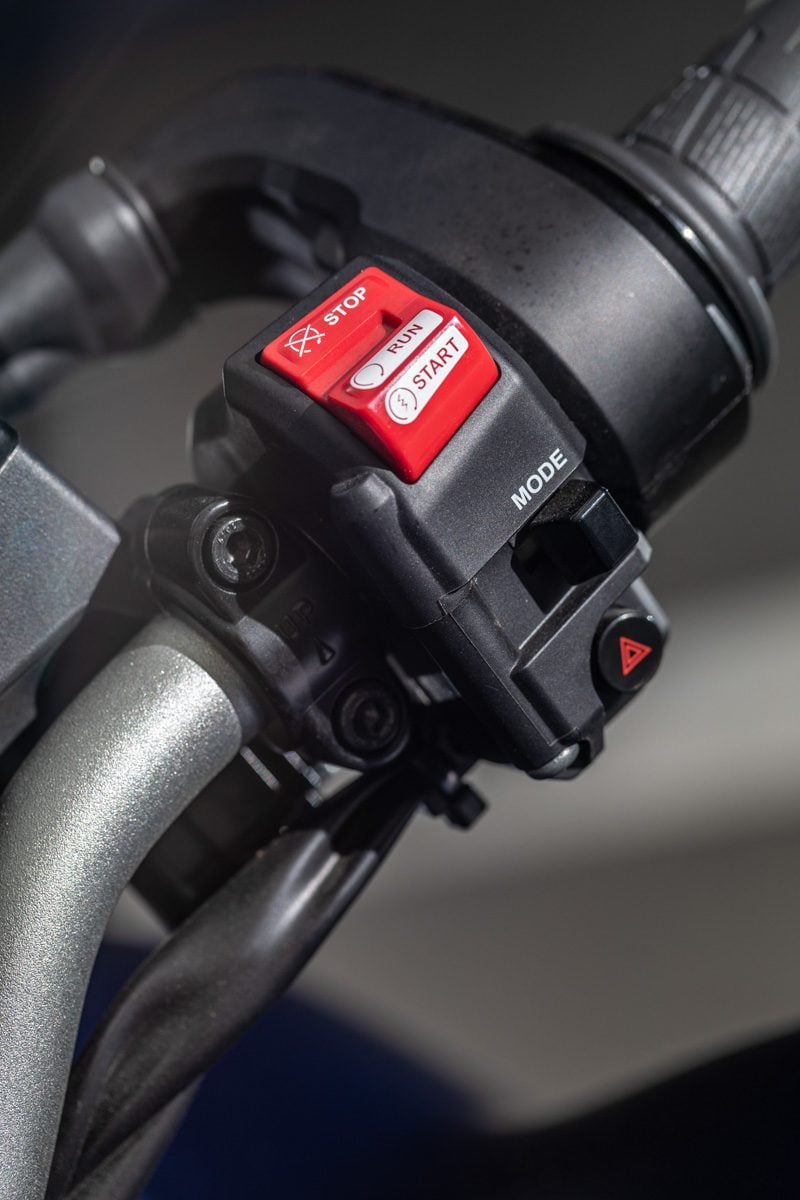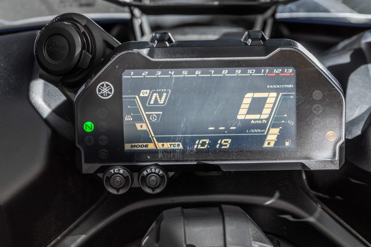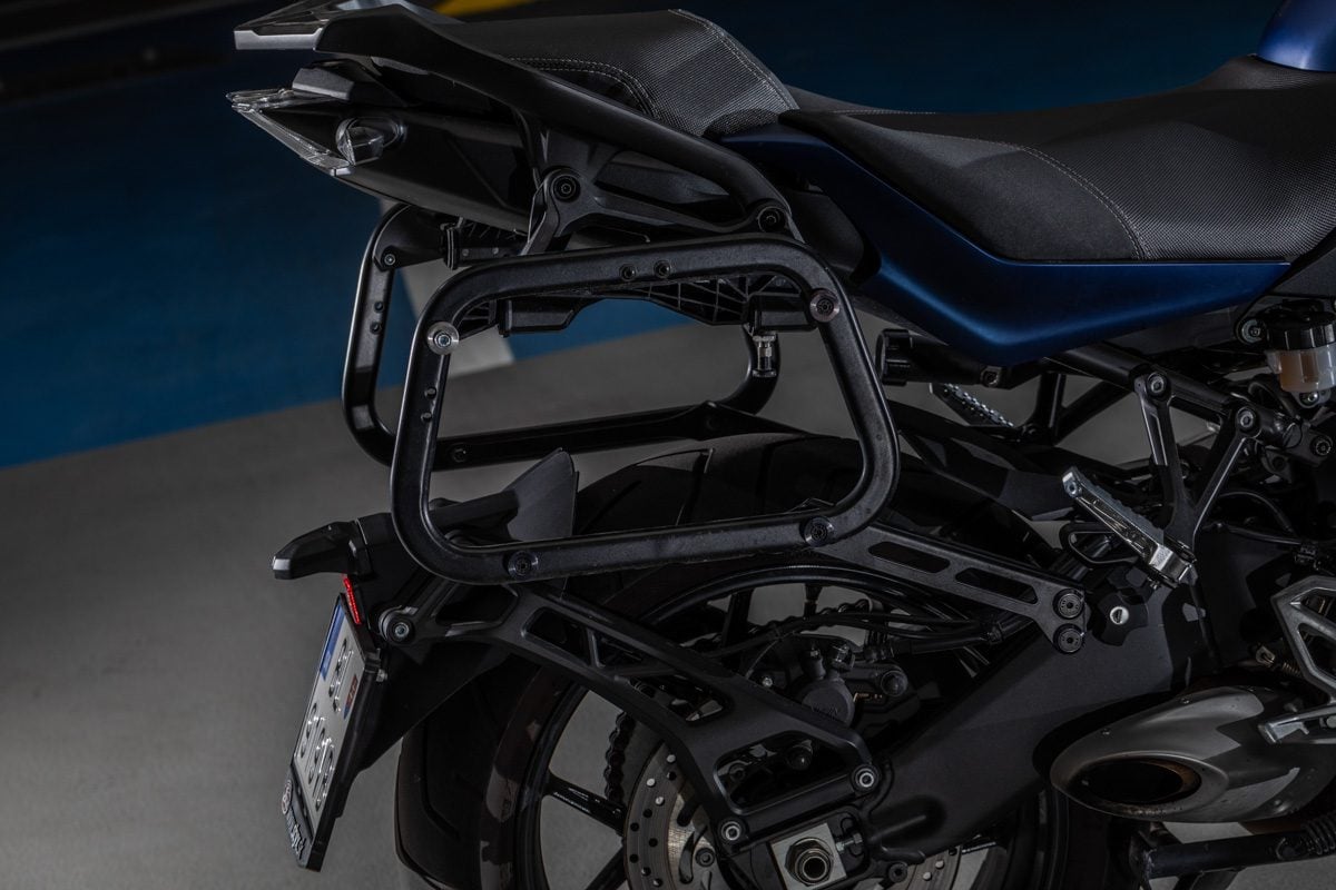Vo výbave je dvojica bočných 25-litrových kufrov z polomäkkého plastu. A ako už pri vyšších triedach býva zvukom, máte k dispozícii aj tempomat, vyhrievané rukoväte, niekoľko režimov palivových máp a nastaviteľnú trakčnú kontrolu v dvoch stupňoch s možnosťou ju úplne vypnúť.