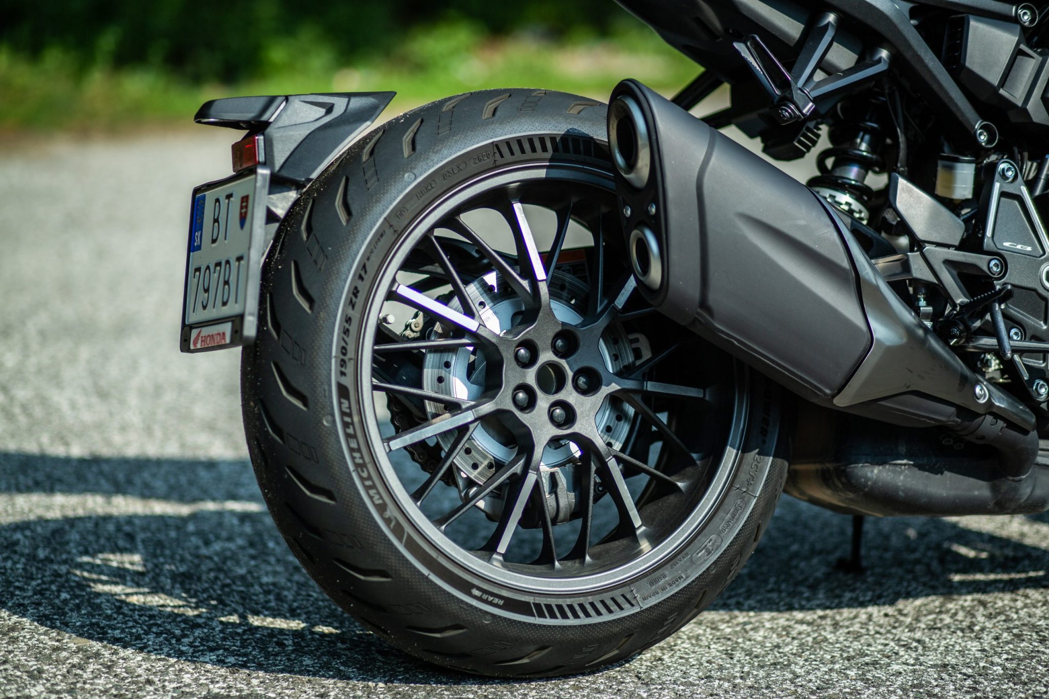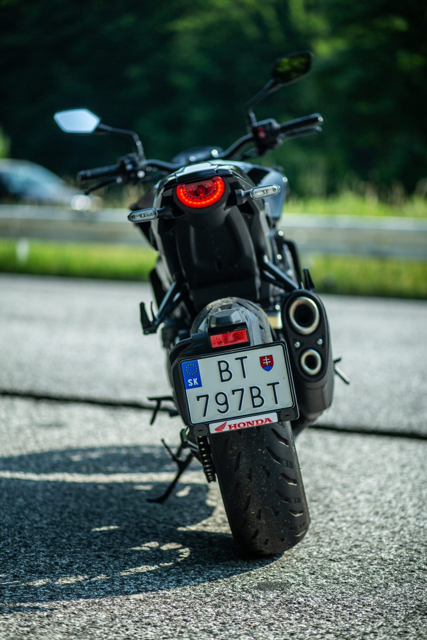 Ten je efektne použitý, ako na motore ,tak aj na kolesách. Avšak jedna vec sa mi na CB1000R naozaj nepáči. A to je držiak evidenčného čísla. Čisto z estetického hľadiska. Keď sa na motorku pozeráte z pravej strany akoby levitoval kúsok za zadným kolesom. Ale to je asi jediná vec ktorá sa mi na CB1000R Black Edition nepáči a určite by som riešil nejaký držiak z druhovýroby.