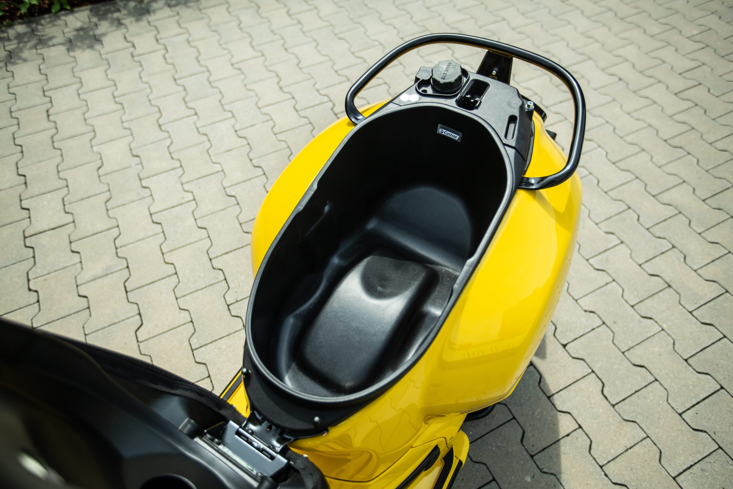 Čo sa týka úložného priestoru tak na môj vkus je ho tu málo. Aj keď máte háčik na zavesenie tašky či kabelky tak pod sedadlo toho moc nedáte. Pokiaľ jazdíte s integrálnou prilbou tak ju budete nosiť so sebou. Počas jazdy sa tam aj docela kumuluje teplo od motora.