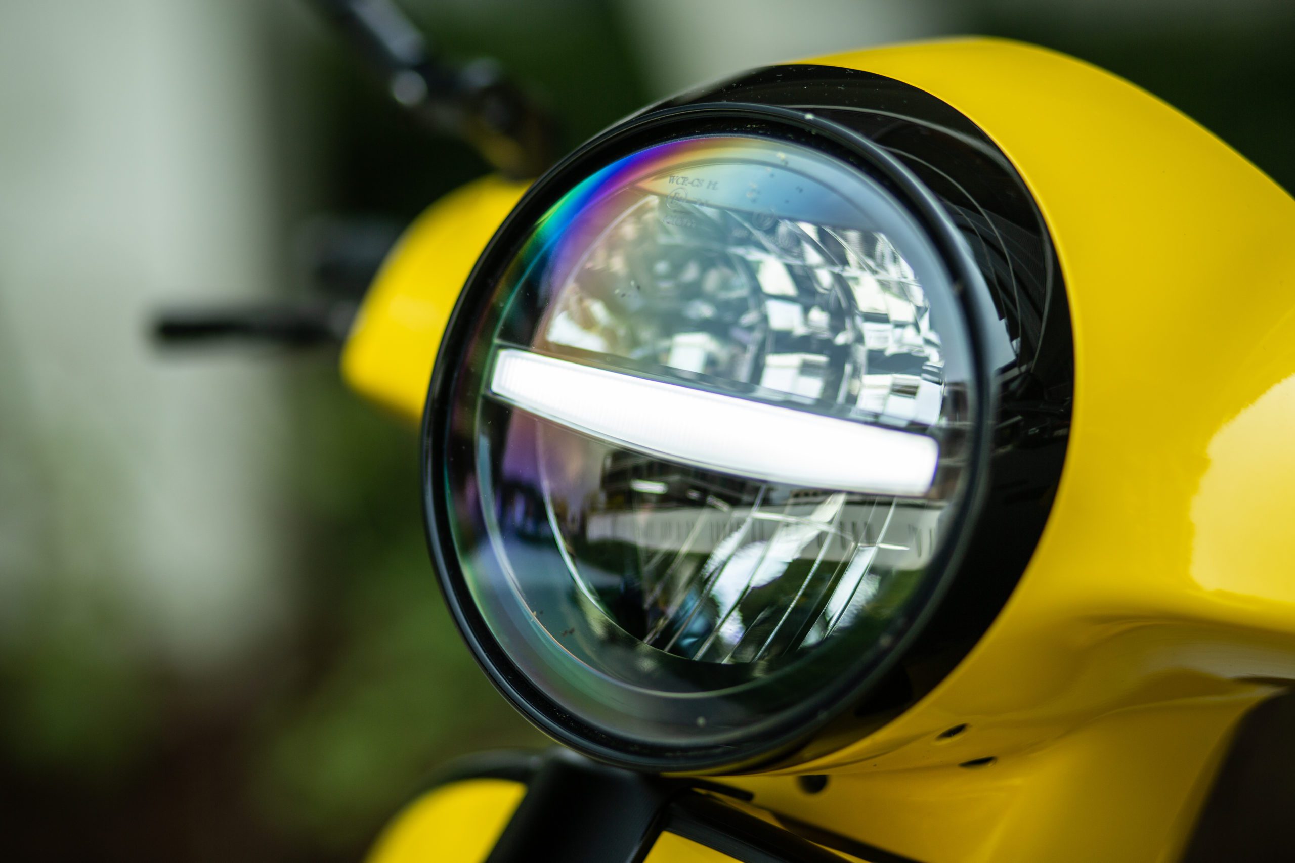 Prejdime na svetlá. Čo sa týka osvetlenia tak to je kompletne LEDkové. Predné svetlo osvetlí presne to čo potrebujete a je dostatočne silné. Palubné prístroje sú pekne zapustené do kapotáže riadidiel a majú len to najpotrebnejšie. Veľký rýchlomer, ktorý dominuje prednej časti spolu s veľkými bielymi číslami, ktoré ukazujú vašu rýchlosť v kilometroch. Nájdete tu aj ukazovatele v míľach pre prípad, že by ste sa na výlete pozabudli a zašli až príliš ďaleko. Na malom displeji pod rýchlomerom nájdete stav paliva a počítadlo kilometrov s hodinami.