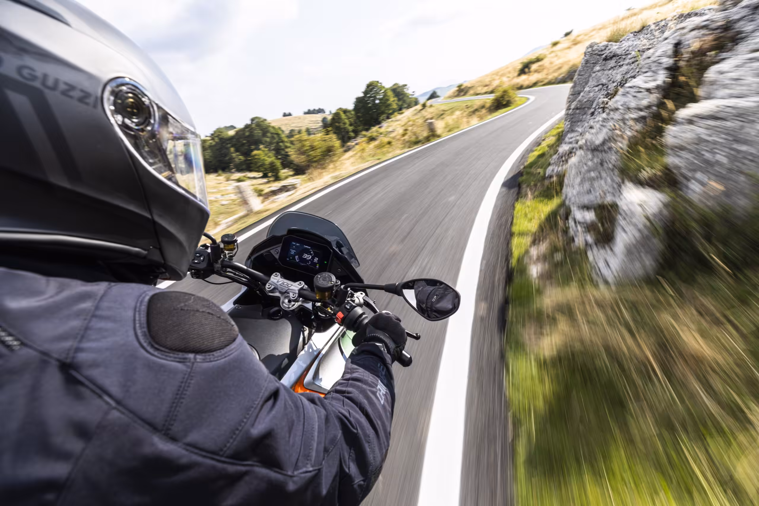 Moto Guzzi V100 Mandello tak otvára novú kapitolu a interpretuje podobu športovo-cestovného motocykla so sviežou víziou. Kompaktné rozmery a dynamická športová jazda typická pre najlepších roadsterov sa snúbia s pohodlím a ochranou cestovného motocykla vďaka technológiám a aerodynamickým riešeniam, ktoré využíva.