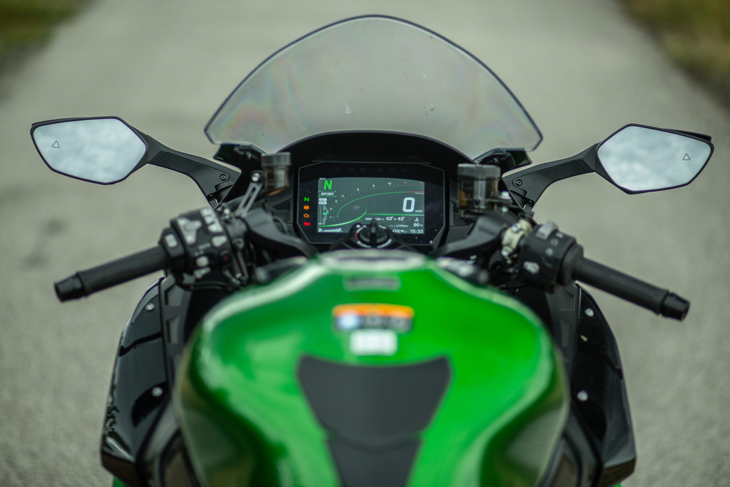 Poďme sa pozrieť bližšie na systémy. Keď som si podrobne čítal špecifikáciu Kawasaki H2 SX SE, tak som si myslel, že snáď čítam o nejakom aute. Bezkľúčové zapaľovanie, asistent rozjazdu do kopca, plne adaptívny tempomat, FCW – varovanie pred kolíziou. Tu sa ale pristavím. Aj keď v režime adaptívneho tempomatu vie H2jka sama brzdiť, pri FCW vás naozaj iba varuje! Brzdu už budete musieť ovládať sami. Varovanie je nastavené trochu na môj vkus precitlivene. Nesmiem ďalej zabudnúť na detekciu mŕtveho uhla. Takýto systém som na motorke mal možnosť vyskúšať po prvýkrát. Musím povedať, že trojuholníček v spätnom zrkadle fungoval spoľahlivo. Či už na okreskách alebo v meste.