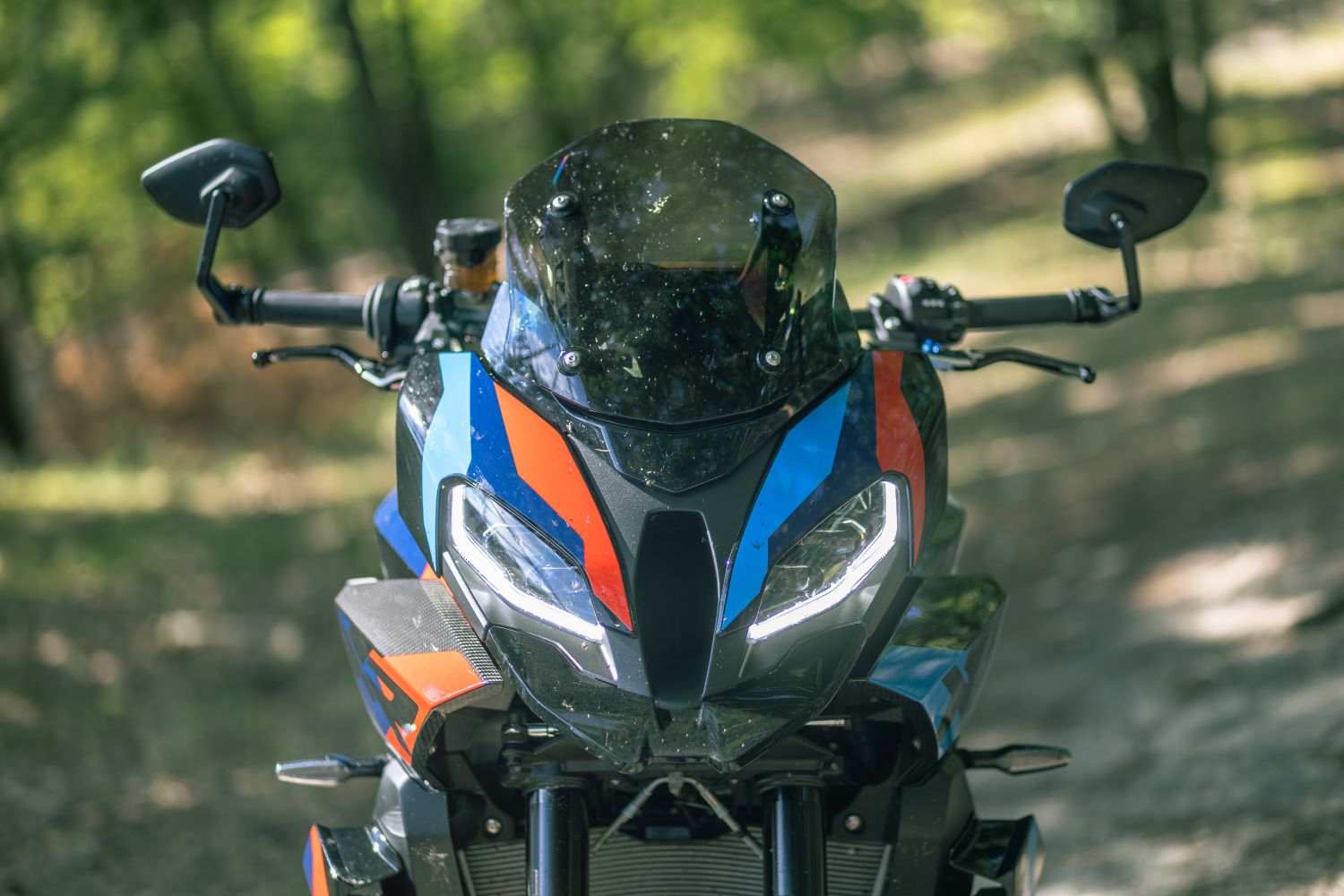 Na prvý pohľad sa môže zdať, že M1000XR je len agresívnejšia verzia S1000XR, na ktorú v továrni navešali plno karbónových doplnkov, ale nie je to úplne pravda. Aerodynamické krídla, ktoré generujú 12 kg prítlaku pri vysokých rýchlostiach, robia z M-kovej verzie úplne iné zviera. Predná maska je ostrejšia, štíhlejšia a agresívnejšia, pričom zadná časť je minimalistickejšia a viac zameraná na dynamiku. Farby typické pre M-divíziu – kombinácia bielej, modrej a červenej – podčiarkujú exkluzivitu tohto modelu.