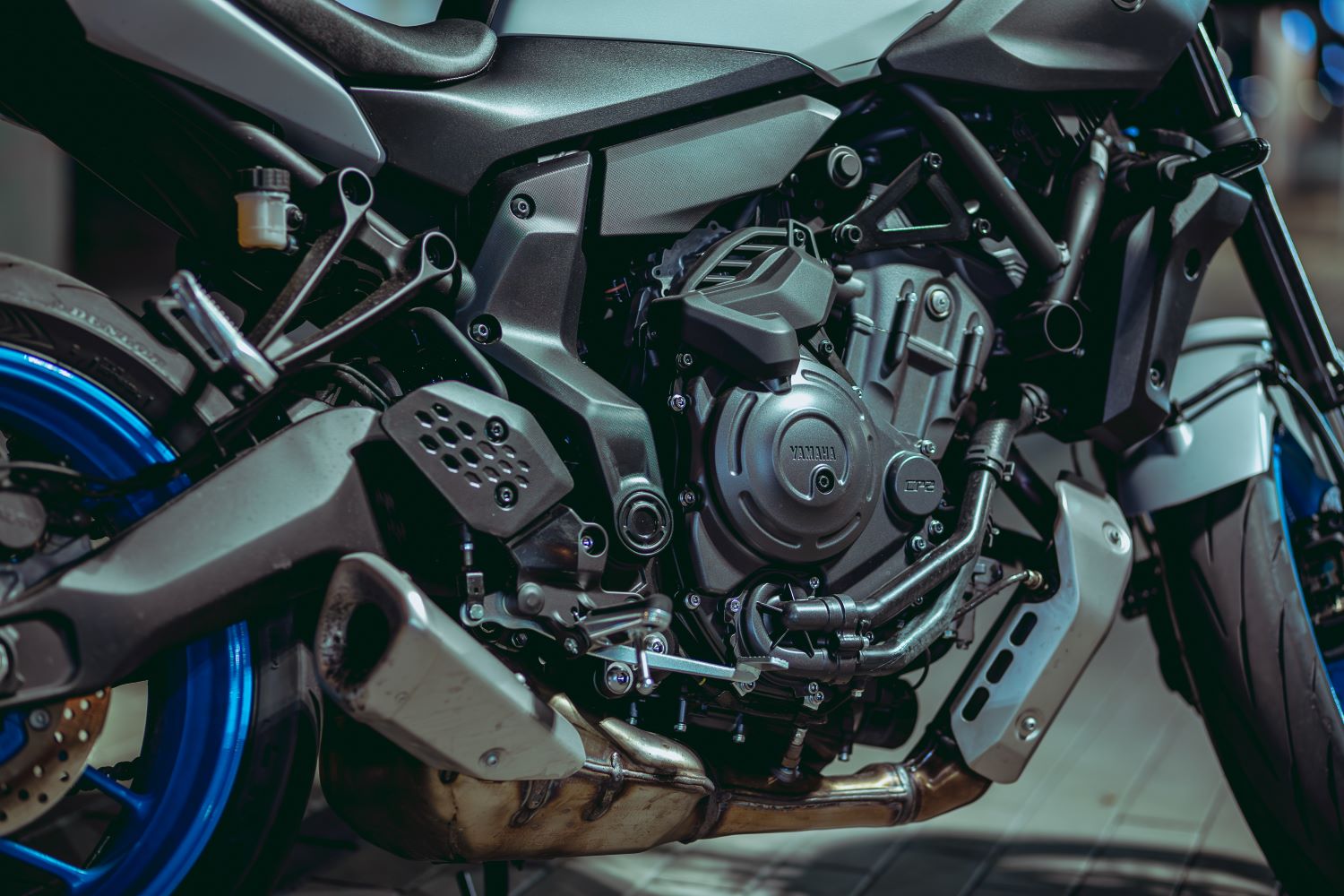 Starý dobrý dvojvalcový CP2 agregát s objemom 689 cm³ ostal vernou dušou MT-07. Výkon 73,4 k a krútiaci moment 68 Nm zachovávajú úspešný recept: okamžitú reakciu na plyn, hutný záťah v strednom spektre otáčok a zvuk, ktorý rozreže nočné ticho ako britva. Najväčším prekvapením je voliteľná automatická prevodovka. Yamaha nasadila vlastný elektronicky riadený systém radenia, ktorý využíva dvojicu elektromotorov. Jeden ovláda spojku a druhý samotné radenie prevodových stupňov. Tento systém umožňuje ťažiť z automatického alebo sekvenčného manuálneho režimu bez potreby spojkovej páčky, pričom si zachováva rýchlu odozvu v meste a prirodzený rytmus jazdy.