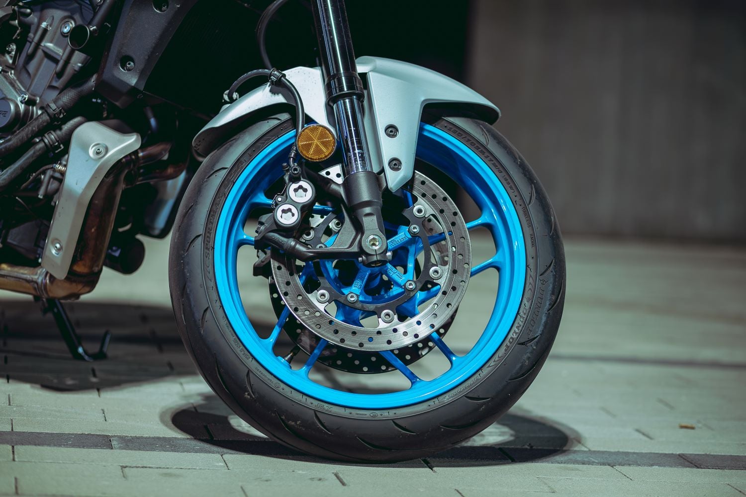 Yamaha MT-07 si zachovala svoj typický charakter — ľahkosť, obratnosť a úprimnú stabilitu v zákrutách. Predné odpruženie tvorí 41 mm klasická teleskopická vidlica, zadný centrálny tlmič je nastaviteľný na predpätie. Podvozok je tuhý a tvrdý, v zákrutách ponúka presnosť a výbornú odozvu, no na bežných cestách je jeho tvrdosť značne cítiť a pri dlhších jazdách môže byť únavný. Ideálny kompromis medzi športovou istotou a každodennou realitou to síce nie je, ale kto má rád priamy kontakt s vozovkou, nájde v MT-07 verného partnera. Kolesá majú rozmer 17 palcov a obuté sú do pneumatík, ktoré kombinujú stabilitu s obratnosťou. Brzdenie zabezpečujú dvojité 298 mm kotúče vpredu a 245 mm kotúč vzadu, doplnené o ABS ako štandard. Predné brzdy sú dostačujúce a majú dobrú reakciu, no prijali by sme väčšiu presnosť a jemnejšiu dávkovateľnosť. Najmä zo začiatku sú také vlažnejšie a až postupne začínajú reagovať tak, ako by sme si predstavovali.