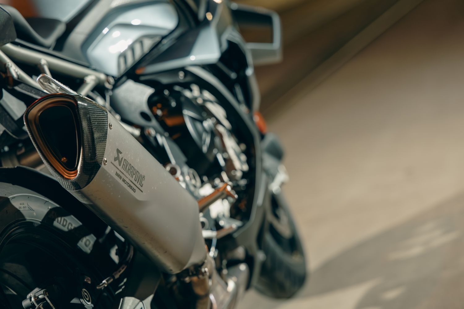 Hliníkový rám s tuhou prednou časťou a masívnou kyvkou dáva presnú odozvu. Podvozok je plne nastaviteľný: vpredu 45 mm USD (predpätie/kompresia/odskok), v opcii DDC (Dynamic Damping Control), ak chcete poloadaptívne tlmenie. Nastavenie drží stopu aj na zlom povrchu a aj pri neskorých brzdách zostáva predok pod kontrolou. Vpredu sa nachádzajú dvojité 320 mm kotúče s radiálne uchytenými štvorpiestikovými monoblokmi od Bremba, vzadu 220 mm kotúč s jedným piestikom. V BMW nezabudli ani na ABS Pro so sklonomerom a Brake Slide Assist pre kontrolované „šmyky“ do zákrut. Páčka má tvrdý, čitateľný nástup, dávkovanie je ostré, ale predvídateľné, s ľahkosťou je dávkovateľný aj jedným prstom. Pri dlhom stinte brzdy nevädnú, ak je v poriadku kvapalina a prúdenie vzduchu cez kanály.