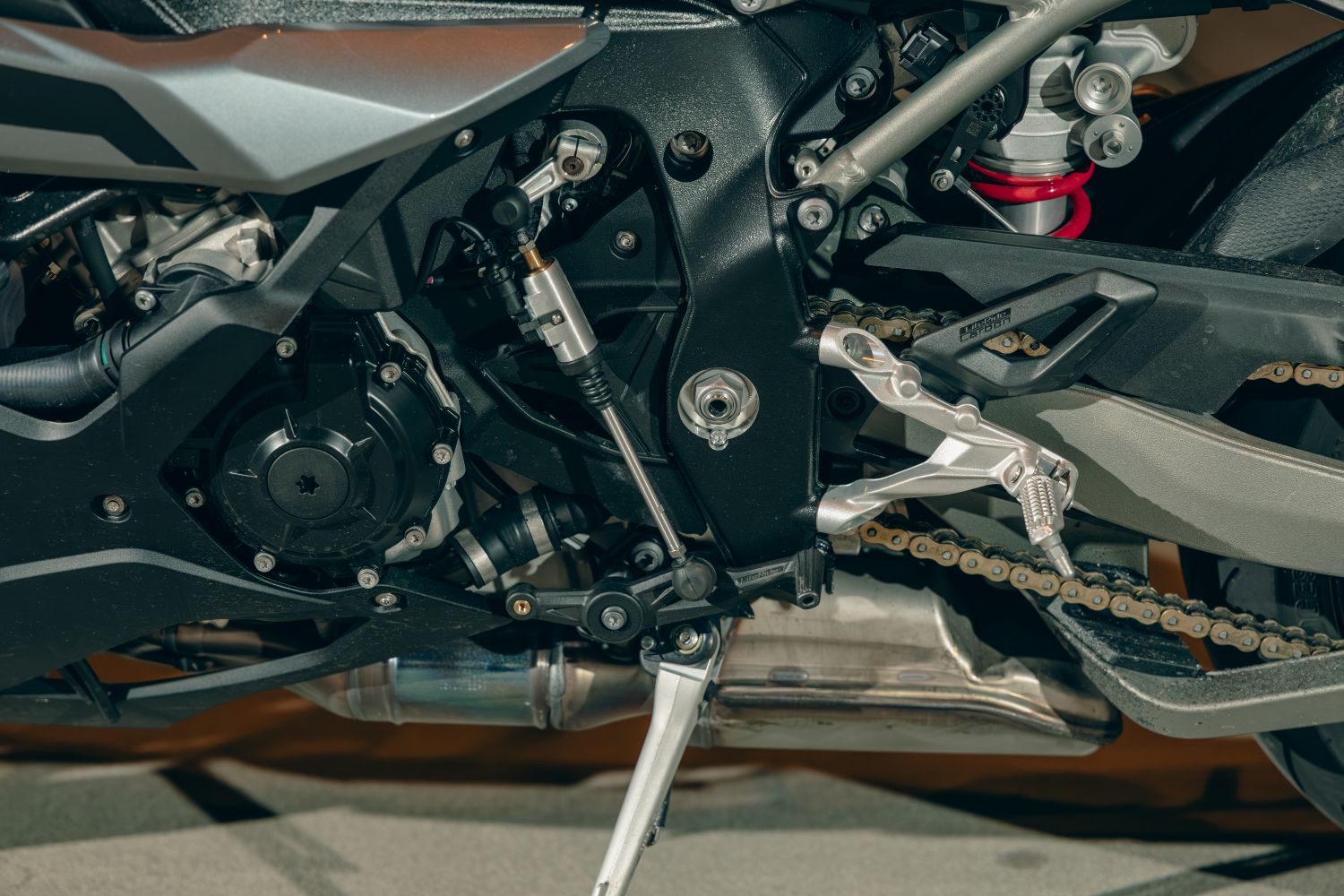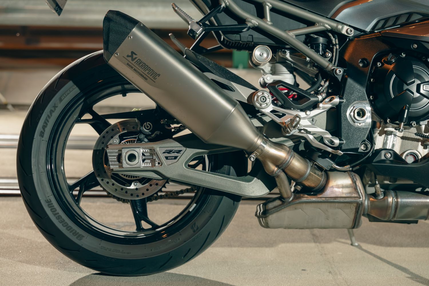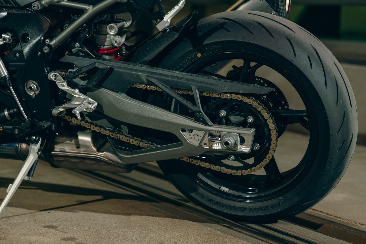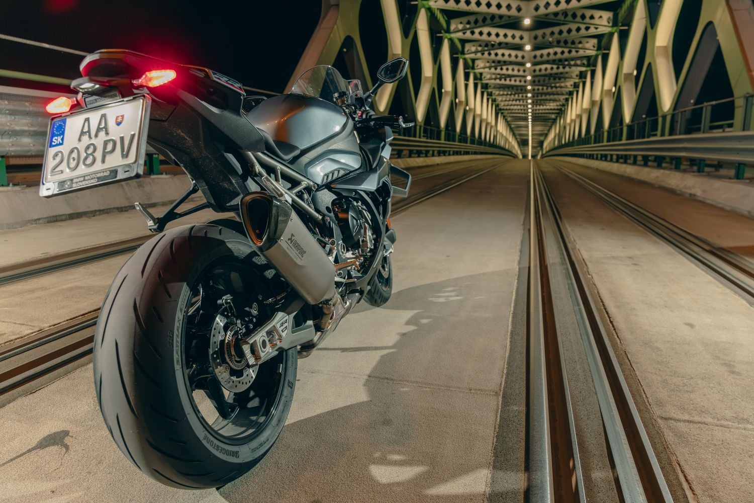 Hliníkový rám s tuhou prednou časťou a masívnou kyvkou dáva presnú odozvu. Podvozok je plne nastaviteľný: vpredu 45 mm USD (predpätie/kompresia/odskok), v opcii DDC (Dynamic Damping Control), ak chcete poloadaptívne tlmenie. Nastavenie drží stopu aj na zlom povrchu a aj pri neskorých brzdách zostáva predok pod kontrolou. Vpredu sa nachádzajú dvojité 320 mm kotúče s radiálne uchytenými štvorpiestikovými monoblokmi od Bremba, vzadu 220 mm kotúč s jedným piestikom. V BMW nezabudli ani na ABS Pro so sklonomerom a Brake Slide Assist pre kontrolované „šmyky“ do zákrut. Páčka má tvrdý, čitateľný nástup, dávkovanie je ostré, ale predvídateľné, s ľahkosťou je dávkovateľný aj jedným prstom. Pri dlhom stinte brzdy nevädnú, ak je v poriadku kvapalina a prúdenie vzduchu cez kanály.