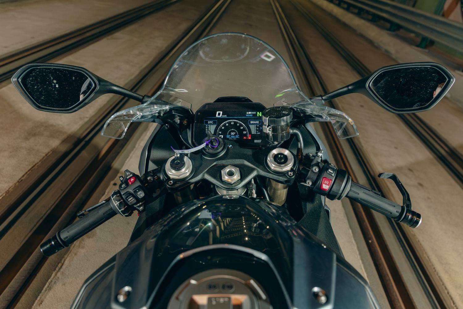 RR prichádza s plným arzenálom: DTC (dynamická kontrola trakcie) so Slide Control, ABS Pro, Launch Control, Wheelie Control, Pit‑lane limiter, viac úrovní Engine Brake a mapovacích režimov motora. Všetko je možné jemne doladiť a uložiť do jazdeckých profilov. V praxi to znamená, že motocykel si dokáže nastaviť doslova na svoju ruku a na rozdiel od „soft“ športov sa tu elektronika nesnaží byť hrdinkou. Pomáha, ale nekazí emócie. Citeľnejšie zasahuje až v naozaj hraničných situáciách. TFT displej je dobre čitateľný aj v ostrom svetle a ponúka viacero prehľadov vrátane náklonov, brzdných síl či časov. S voliteľným M paketom prichádzajú ľahšie kolesá, M sedlo, M batéria, príprava pre GPS lap‑trigger a jemne ešte o čosi ostrejší fíling. Ak plánujete motocykel pravidel vyťahovať na okruh, tak M paket sa určite oplatí.