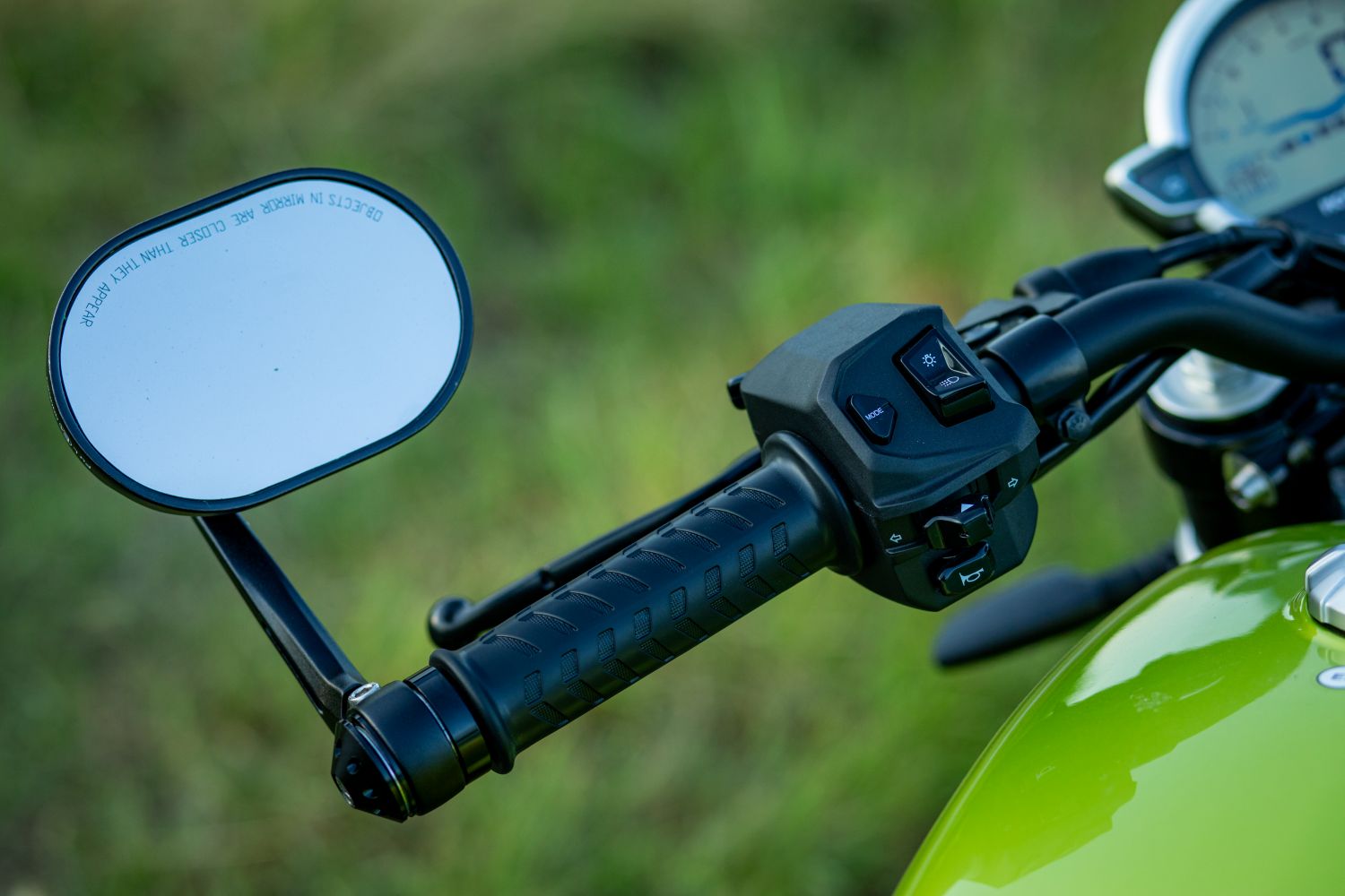 Sedlo je široké a mäkšie, výška 780 mm poteší aj nižších jazdcov. Sedí sa prirodzene vzpriamene, ruky mierne pokrčené, kolená uvoľnené . Riadidlá nie sú extrémne široké, takže prepletanie mestom je isté a pohodlné. Zrkadlá sú čitateľné, vibrácie v nich nezaženú obraz do hmly. Aj po nasadnutí spolujazdca si to V7 odkrúti bez sťažovania.