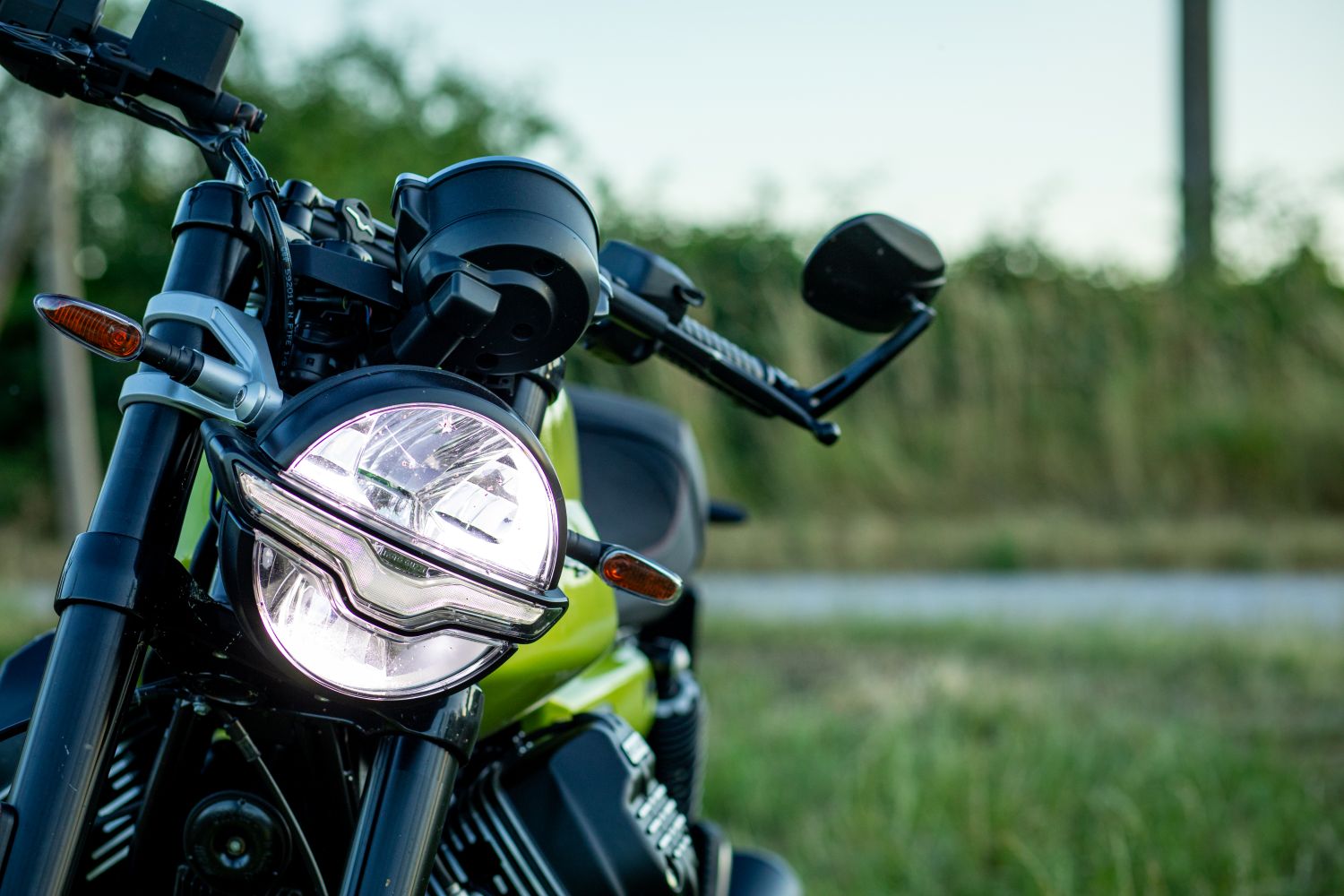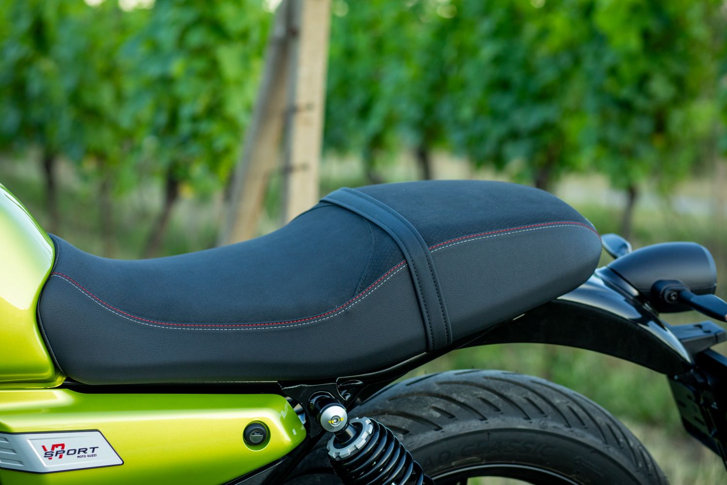 Moto Guzzi V7 Sport hrá na city elegantne a bez nátlaku: klasická nádrž s orlom, subtílne bočné kryty, čisté línie bez zbytočných efektov a s nadčasovým dizajnom. Farba Verde Legnano odkazuje na slávnu históriu. Je svieža, ale nie krikľavá a vo viniciach pri západe slnka vyzerá priam magicky. Trochu chrómu a matných detailov si nepýtajú pozornosť, skôr dotvárajú celok. Je to typ stroja, ktorý funguje ako štýlový doplnok, ale stále ostáva motorkou, nie módou.