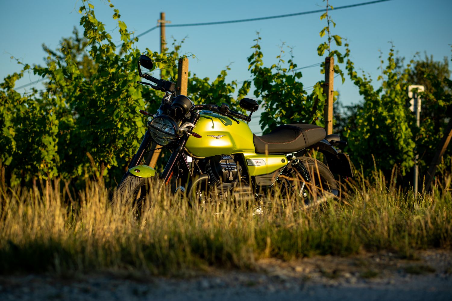 Západ slnka sa pomaly opieral o vinice a V7 Sport sa v zlatom svetle leskla svojím Verde Legnano nádychom. Asi limetková. Nežne polovičky by nám to ozrejmili hneď. Ťažko to pomenovať, no práve táto farba robí z Moto Guzzi V7 Sport niečo, za čím sa ľudia otočia aj bez toho, aby vedeli, na čo sa vlastne pozerajú. Nie je to motorka na naháňanie rekordov. Je to motorka, na ktorej sa spomalí čas. V dnešnej pretechnizovanej a uponáhľanej dobe dovolí spomaliť a nikam sa neponáhľať.