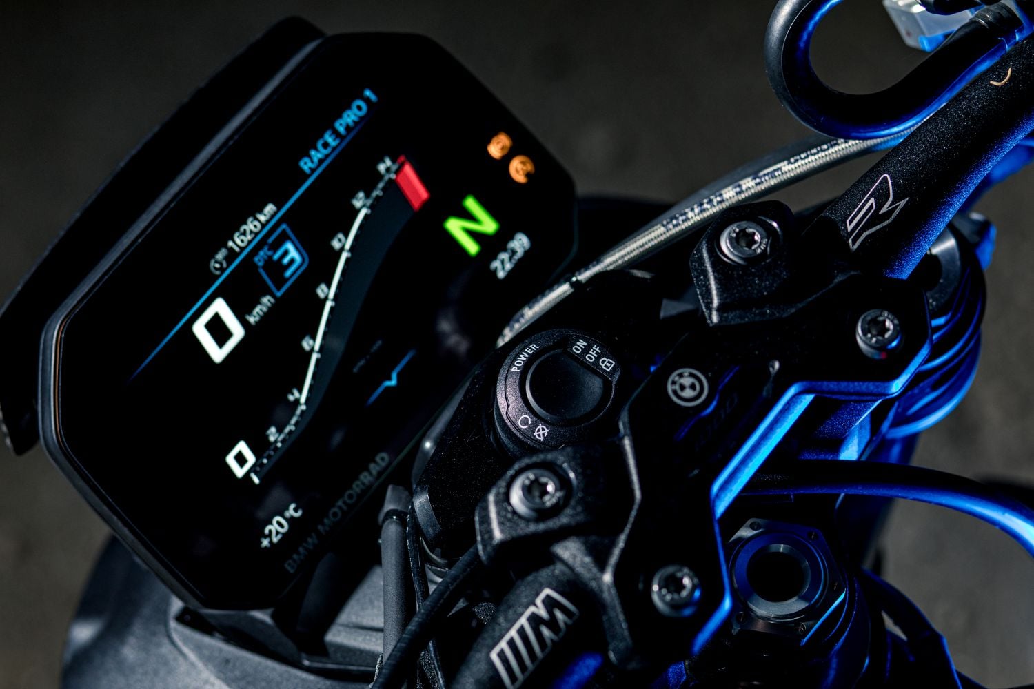 6-osová IMU stojí za DTC (trakciou) so Slide Control, ABS Pro, Wheelie Control, Launch Control, Pit-lane limiterom, nastaviteľným Engine Brake a detailným mapovaním motora. Režimy Rain / Road / Dynamic / Race a Race Pro 1-3 sa dajú doladiť na kliky a uložiť. BMW M 1000 R netrestá jazdca za to, že ide rýchlo, ale trestá ho vtedy, keď ide nepresne. Elektronika zasiahne až vtedy, keď už fyzika povie „dosť,“ dovtedy dáva slobodu.
