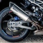 Vpredu sa nachádzajú 2× 320 mm kotúče a štvorpiestikové monobloky M-brakes (vývoj s Nissinom), vzadu 220 mm kotúč. Ich účinok je okamžitý, ale čitateľný. ABS Pro so sklonomerom drží líniu pri brzdení v náklone, Brake Slide Assist pomáha kontrolovať „prikrojený“ nájazd. Pancierové hadice a tuhý hlavný valec dávajú tvrdý, čistý nástup bez gumového pocitu.