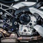 Základom motocykla je superbikový radový štvorvalec 999 cm³ so ShiftCam. Áno, ten z RR, len preladený pre streetfighter. 210 koní (154 kW) pri 13 750 ot./min a 113 Nm pri 11 000 ot./min znamenajú, že aj „stred“ má svaly a vrch len tak neskončí. Odozva na plyn (ride-by-wire) je priama, minimálna mŕtva zóna, len lineárny ťah. Shift Assistant Pro (quickshifter hore/dole) šliape čisto v zábere aj pri brzdení motorom, takže stačí jemne pracovať členkom a nechať valce točiť.