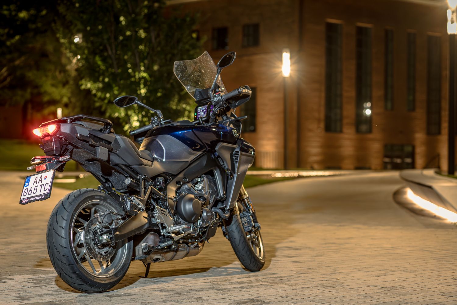 Srdcom motocykla je klasika, ktorá nikdy neomrzí: CP3 trojvalec 890 cm³. Papier hovorí 119 koní pri 10 000 ot./min a 93 Nm pri 7 000 ot./min, ale pocitovo je to hlavne o pružnosti a chuti zrýchľovať. Pri svižnej jazde CP3 vie krásne zatiahnuť zo stredu, nezadýcha sa hneď, a celé to pôsobí ľahko aj vďaka tomu, že reakcia plynu je prirodzená a čitateľná.